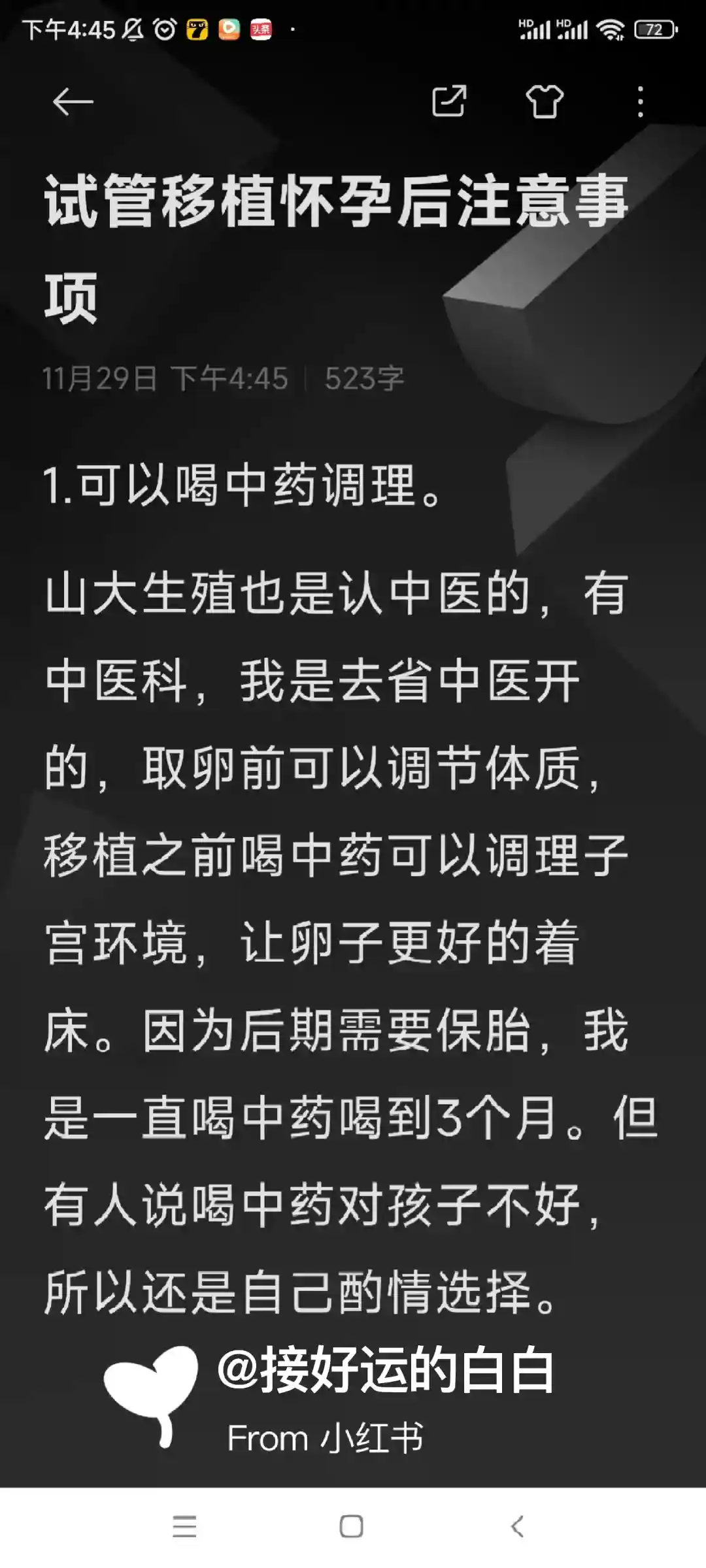 山大生殖也是认中医的,有中医科,我是去省中医开的,取卵前可以调节体质,移植之前喝中药可以调理子宫环境,让卵子更好的着床。因为后期需要保胎,我是一直喝中药喝到3个月。但有人说喝中药对孩子不好,所以还是自己酌情选择。