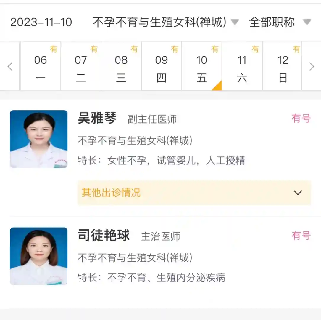 当时挂号是吴雅琴医生👩⚕️ 给我的第一感觉不是很好 都想着不来这家了 之后在搜索了解哪家医院好 结果刷到好多司徒的好评 在她的促排下好多都好孕🍀 还是双胞胎 最终还是选择了佛山市妇幼进行促排 那么 希望我这次促排也有好消息