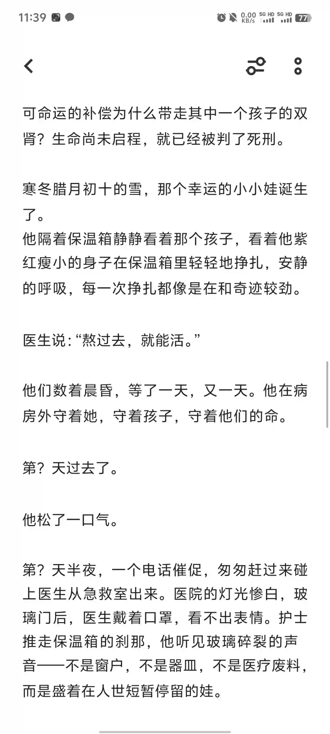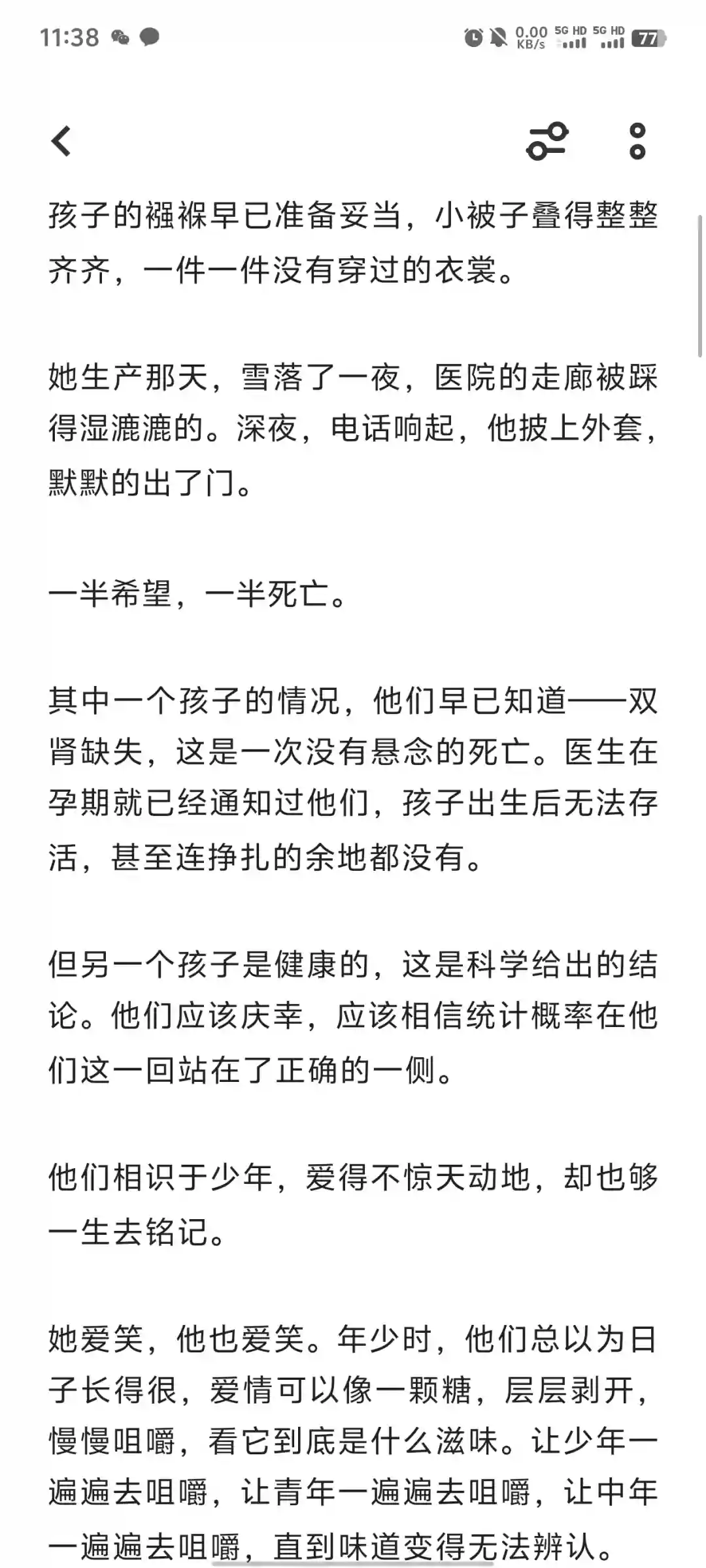 17岁时,我们说爱情就够了,不要孩子。37岁时,我们拼尽全力要孩子,结果……还是没有孩子。医生说,试管婴儿是科技的奇迹。可我的两个孩子,一个没有双肾,生下来就死了;一个进了保温箱,最终还是没能熬过去。
