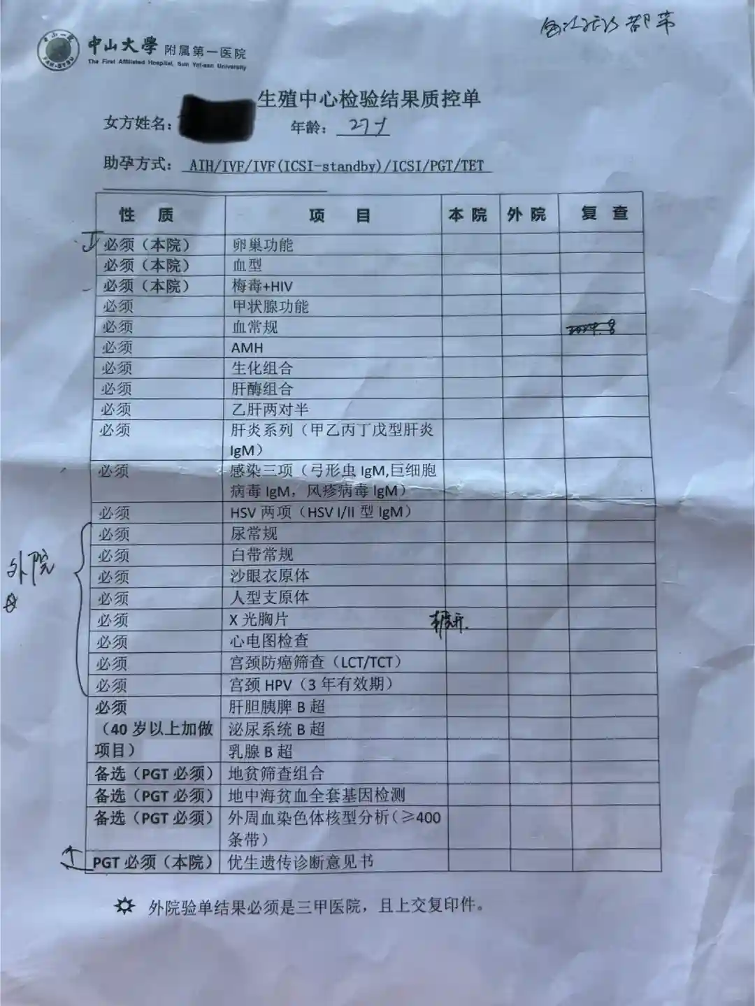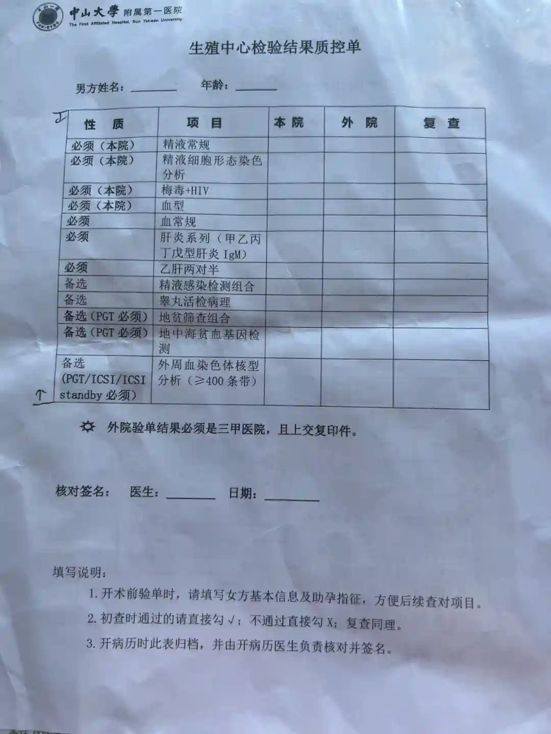 抽血的时候护士看我们有实验室给的PGT单,但没有医生开检查缴费单,叫我们去补,找的男科医生补开,医生也说我们进度太快了。(现有有点担心会不会因为血样提交太早,等可以促排的时候出什么问题又要重新预实验...)