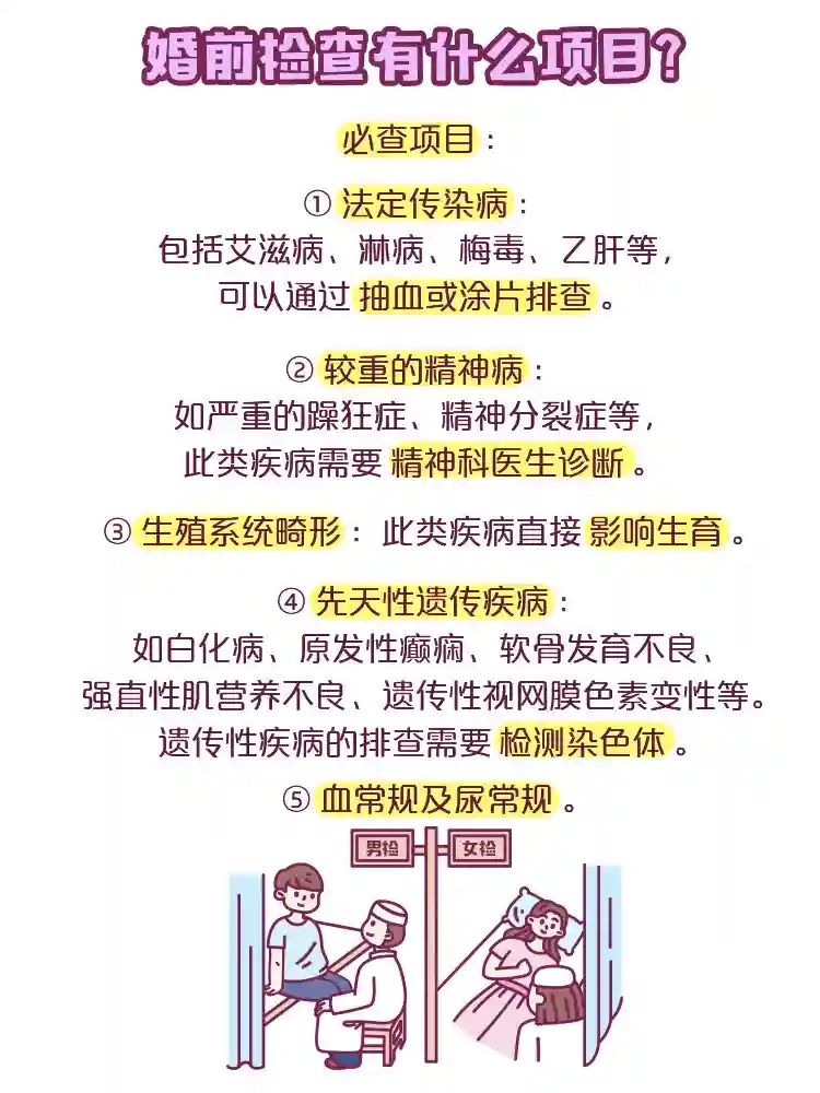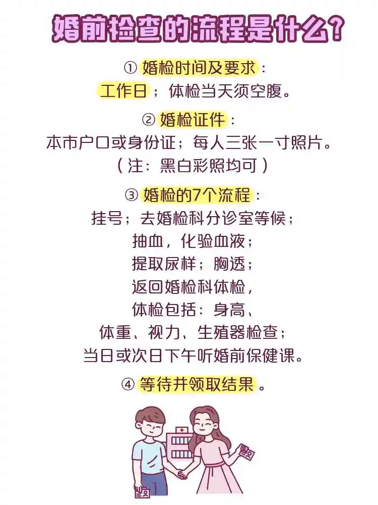 ③婚检的7个流程:挂号;去婚检科分诊室等候;抽血,化验血液;提取尿样;胸透;返回婚检科体检