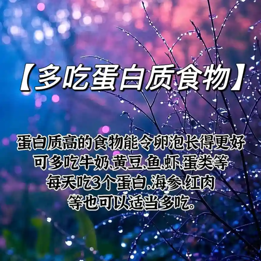 3. 作息篇:养成良好的作息习惯,早睡早起,千万不要熬夜。熬夜会打乱内分泌,影响卵子和精子的质量。每天尽量保证8小时的充足睡眠,让身体得到充分的休息。