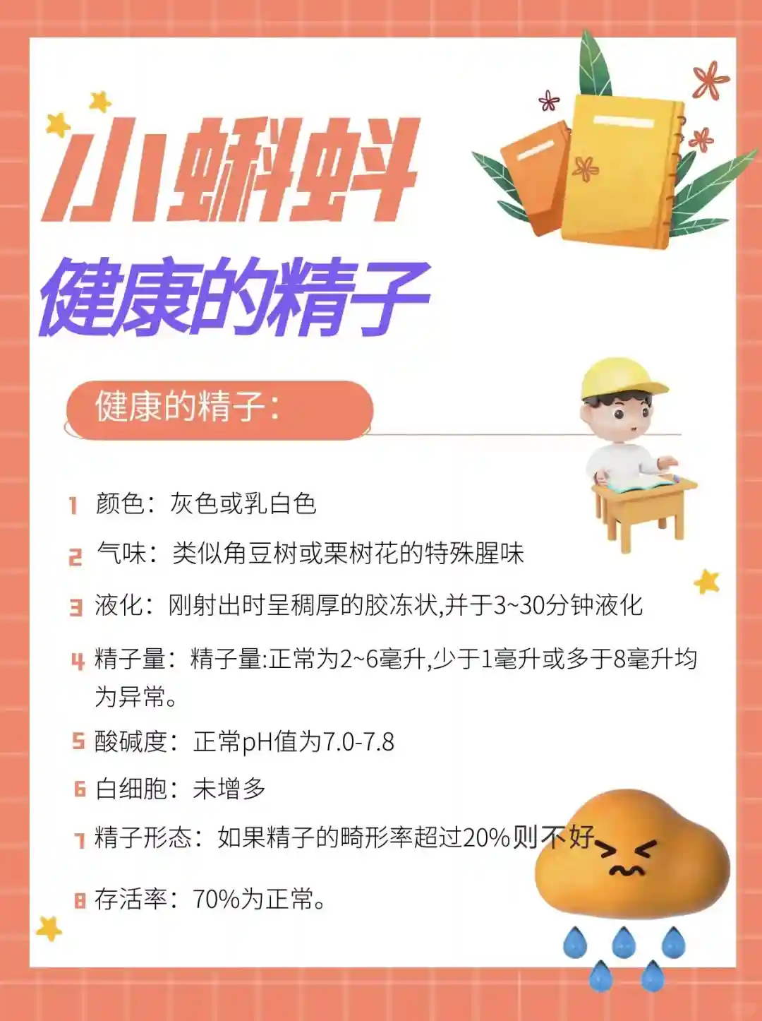 4、精子量:精子量:正常为2~6毫升,少于1毫升或多于8毫升均为异常。