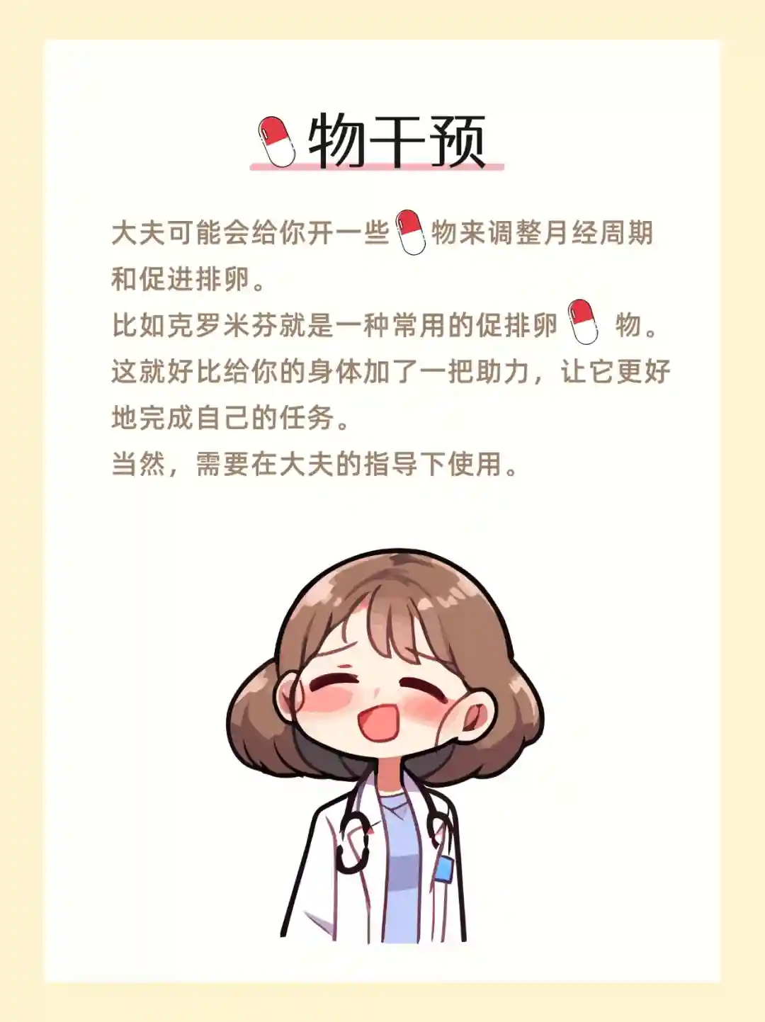 大夫可能会给你开一些💊物来调整月经周期和促进排卵。