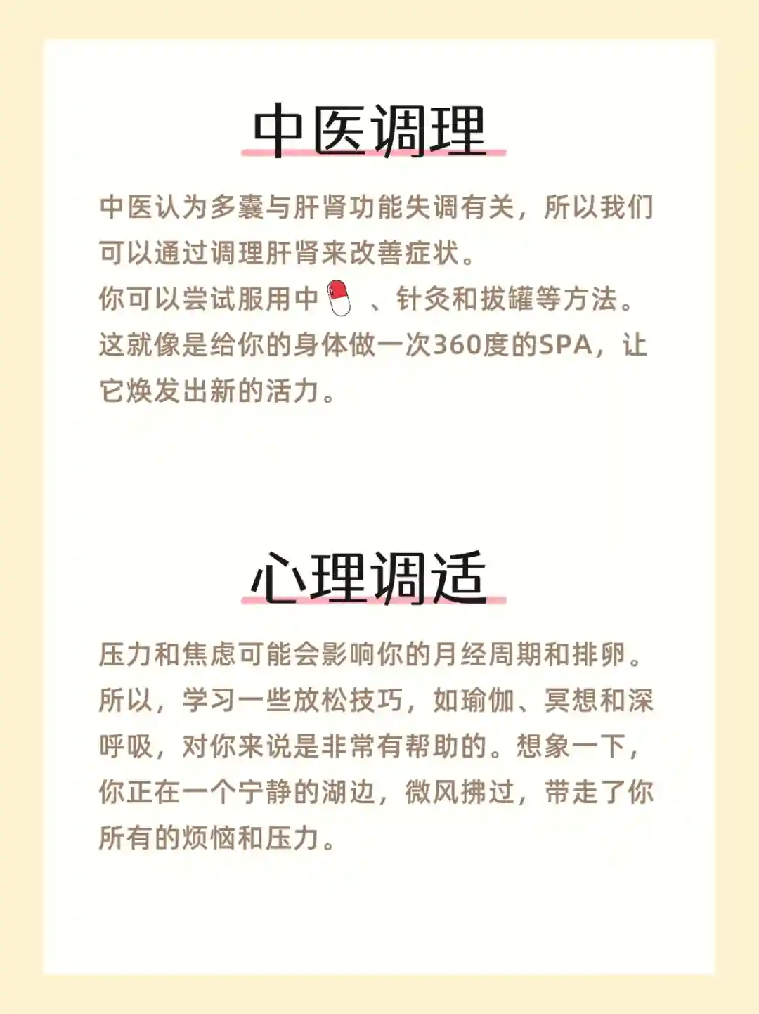 保持健康的体重、规律的运动、均衡的饮食和充足的睡眠,这些都是调理多囊的基础。