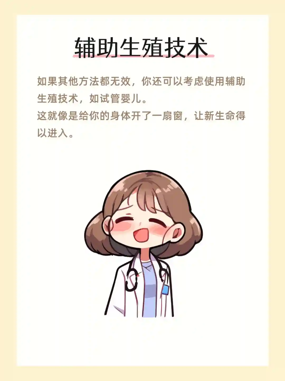 5⃣️辅助生殖技术如果其他方法都无效,你还可以考虑使用辅助生殖技术,如试管婴儿。