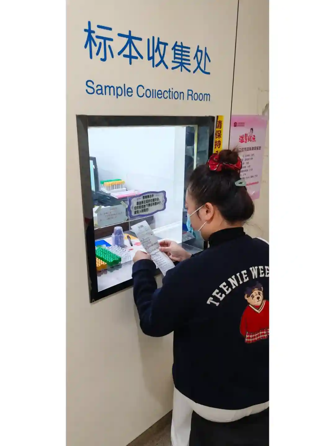 图四~图六 在永庆巷抽血需要先去检验科拿管子,再去抽血地方,注意哦男女分开通道,男士在检验科旁边,女生在大门旁边进去,但是最后你们都会相遇的,我大概抽了11管血,男士抽了5管血,抽血一点都不疼,应该是针管很细的原因,所以大家不用担心抽血很疼了