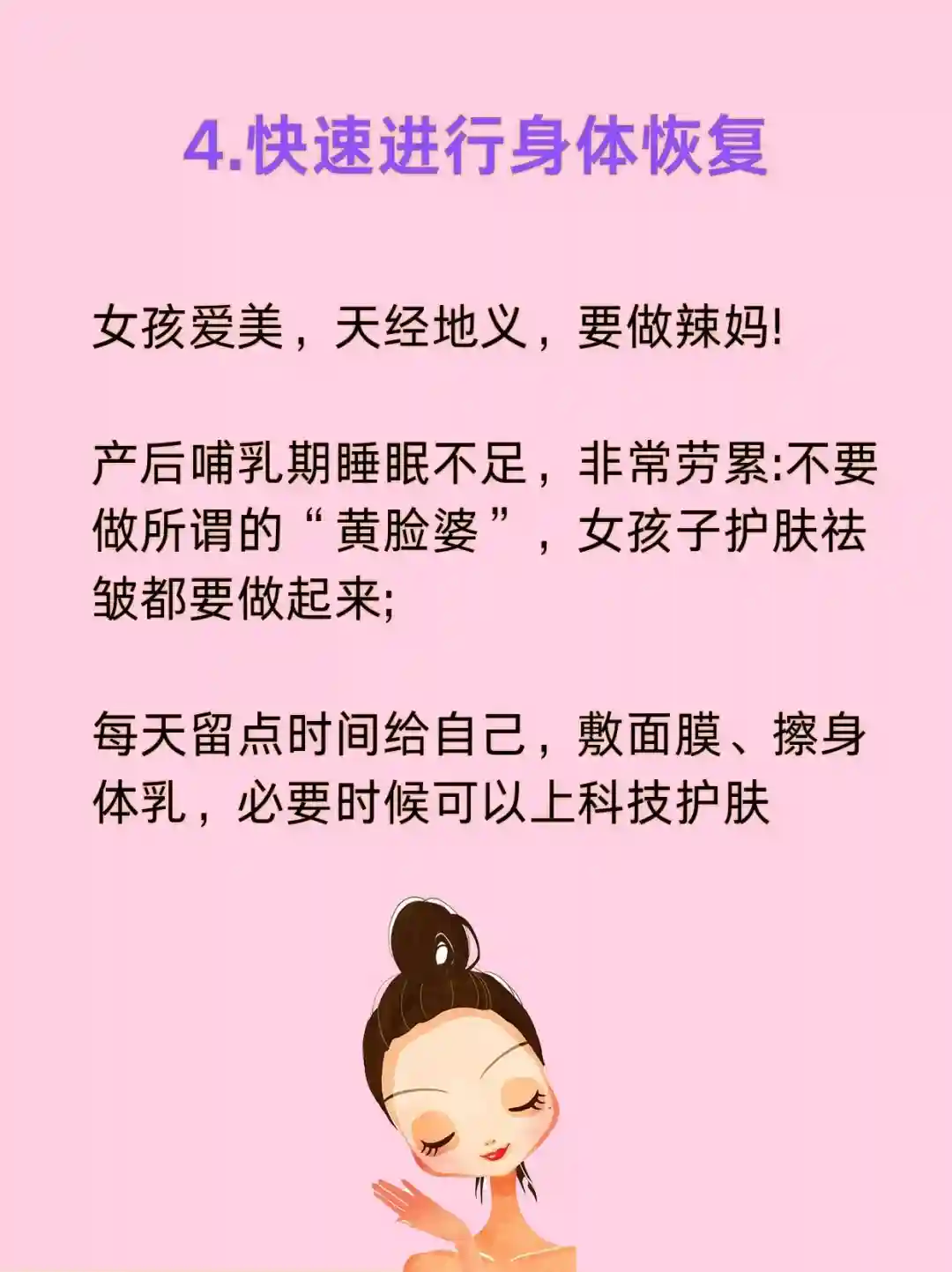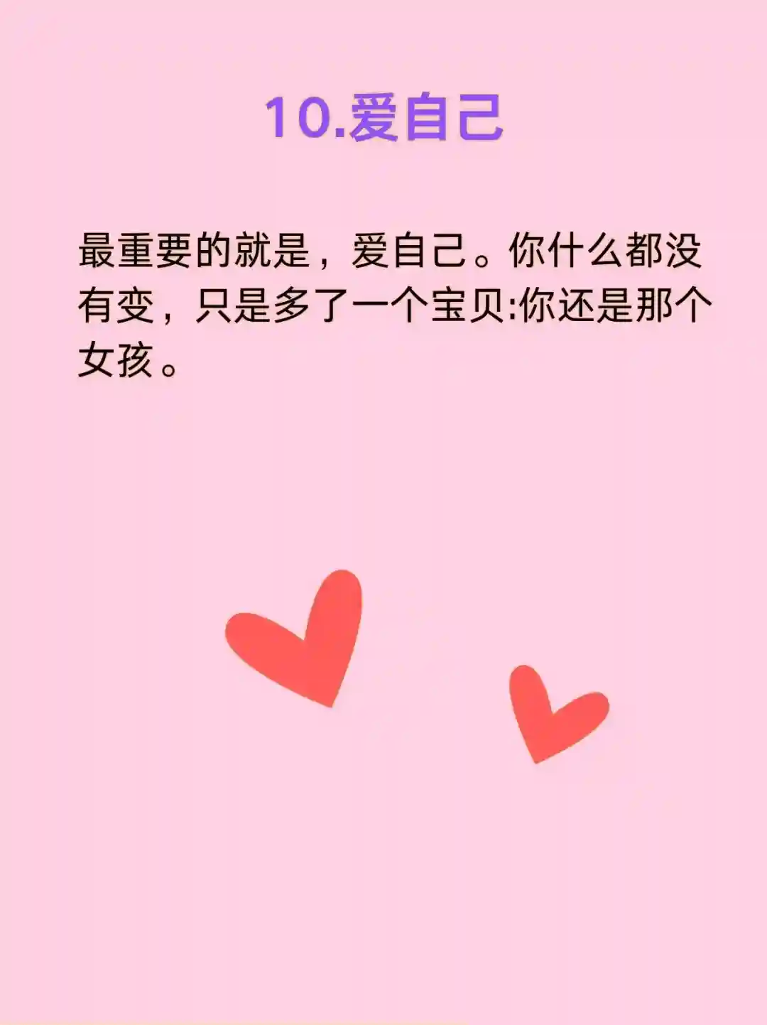 最重要的就是,爱自己。你什么都没有变,只是多了一个宝贝,你还是那个女孩。
