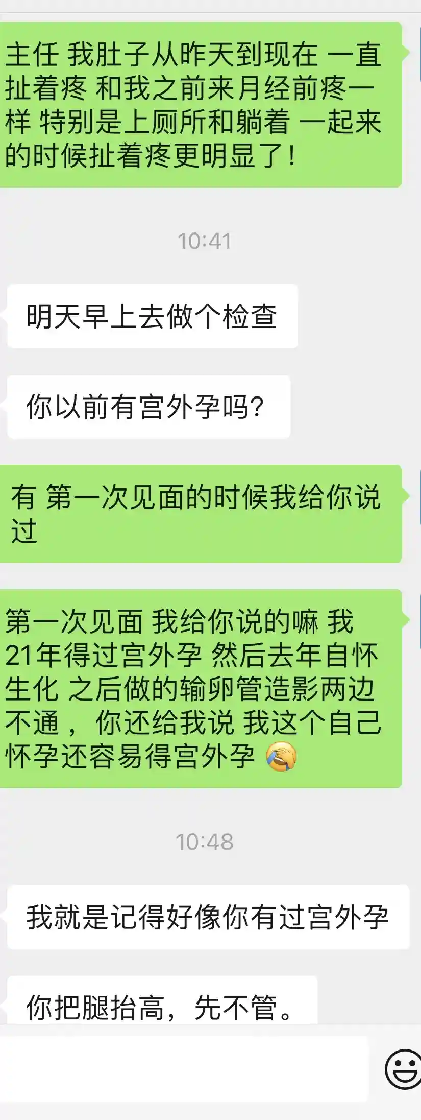 5⃣️移植第九天16号,我再一次给我医生说 我肚子扯从昨天就扯着疼 她的回答你把腿抬高 先不管!