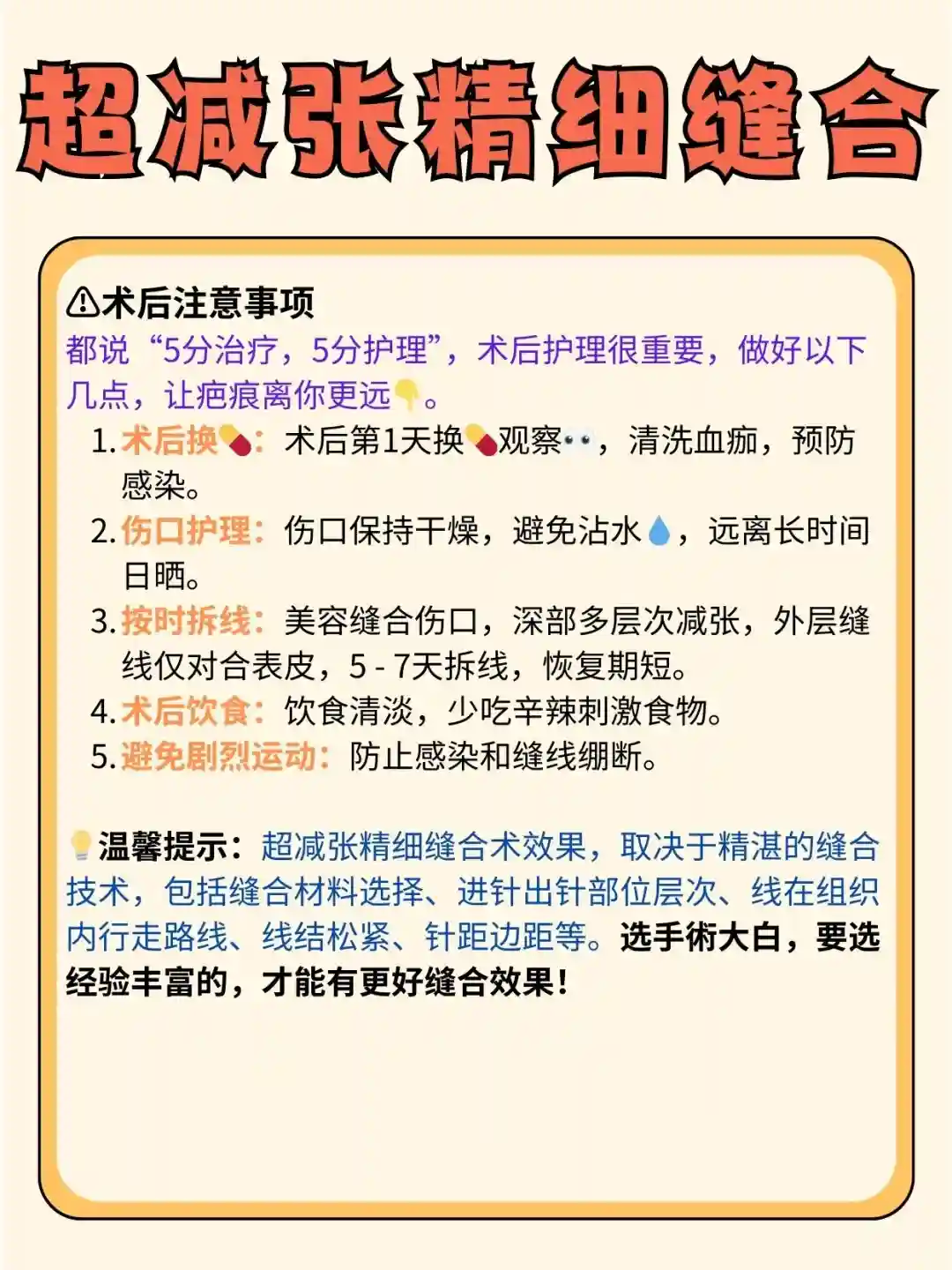 超减张缝合通过远位锚定埋没缝合📌,把伤口恢复时的牵拉张力转移到锚定部位🚀,避免伤口疤痕拉宽或过度增生🙅,从根源上降低疤痕恶化风险。