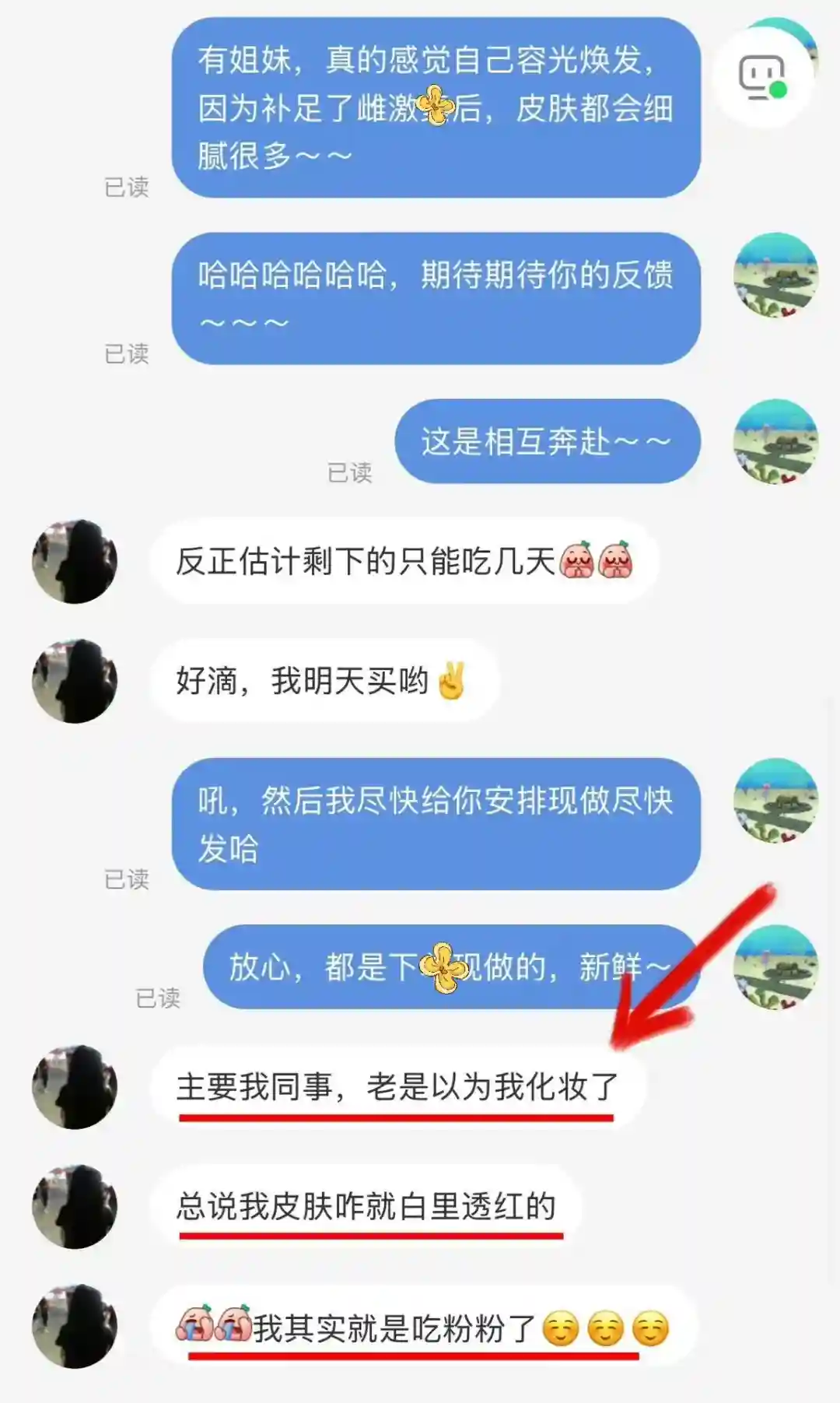补雌后,是真的可以让皮肤更加细腻,更加有女人味,包括我自己也是,坚持吃一段时间,被同事夸气色好了很多
