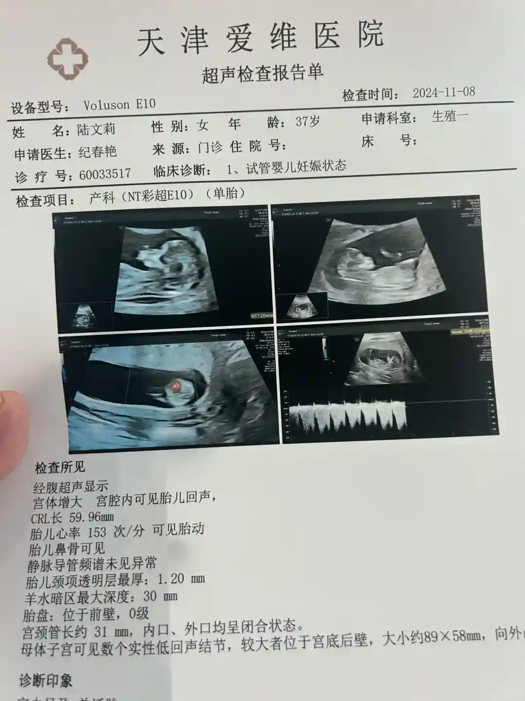 孕12周我的NT顺利通过啦