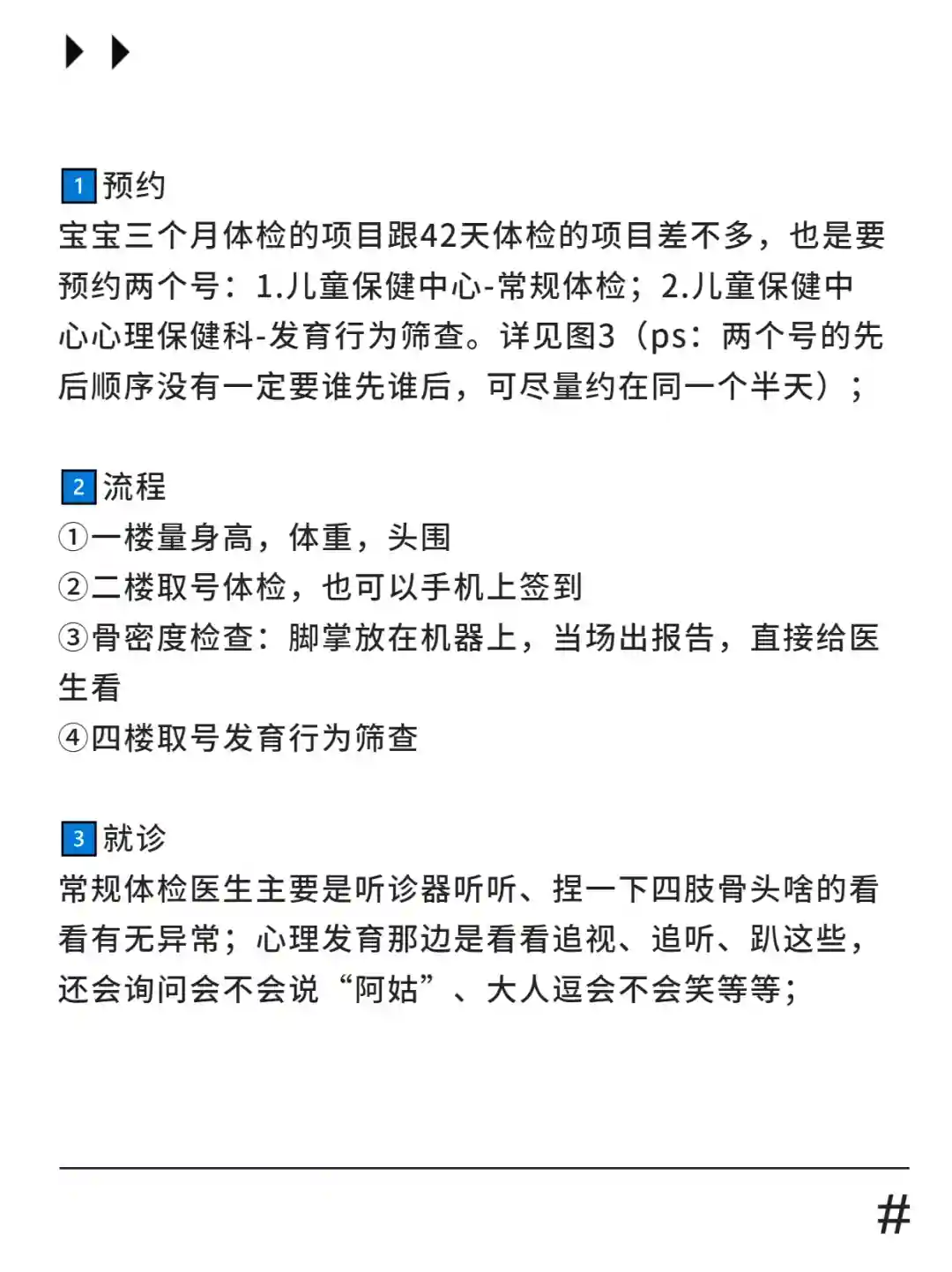 这次体检和42天体检一样,都是约2个号哈!可以提前3天约,尽量约在同一个半天,一次性解决!我是蹲点抢到郭敬民医生的号,人挺有耐心的,玻璃心的我一口气问了十几个问题,都一一帮我解答。(具体流程见图三)