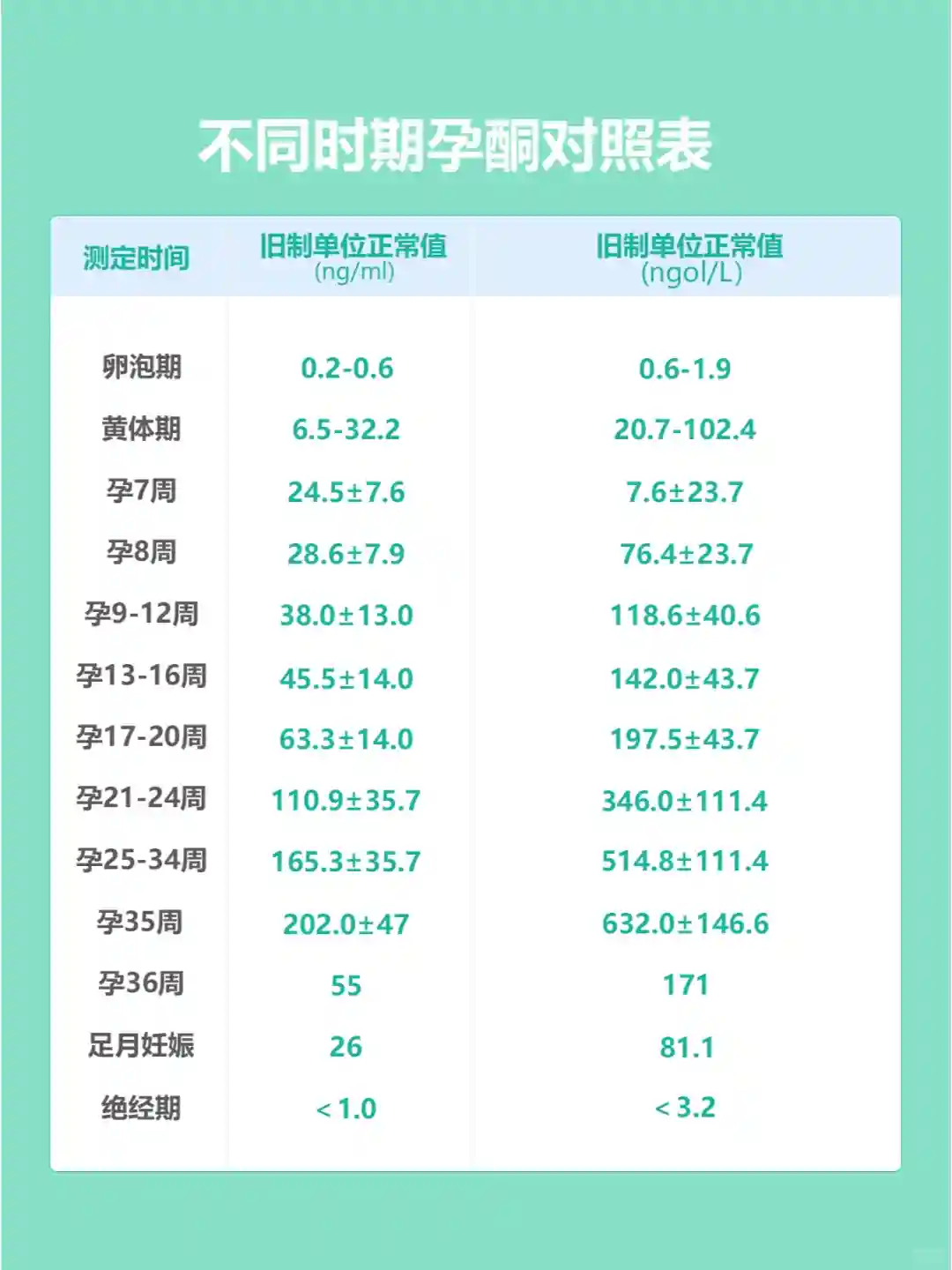 ⭕不同时期的HCG和孕酮数值对照表,见P2-P3;