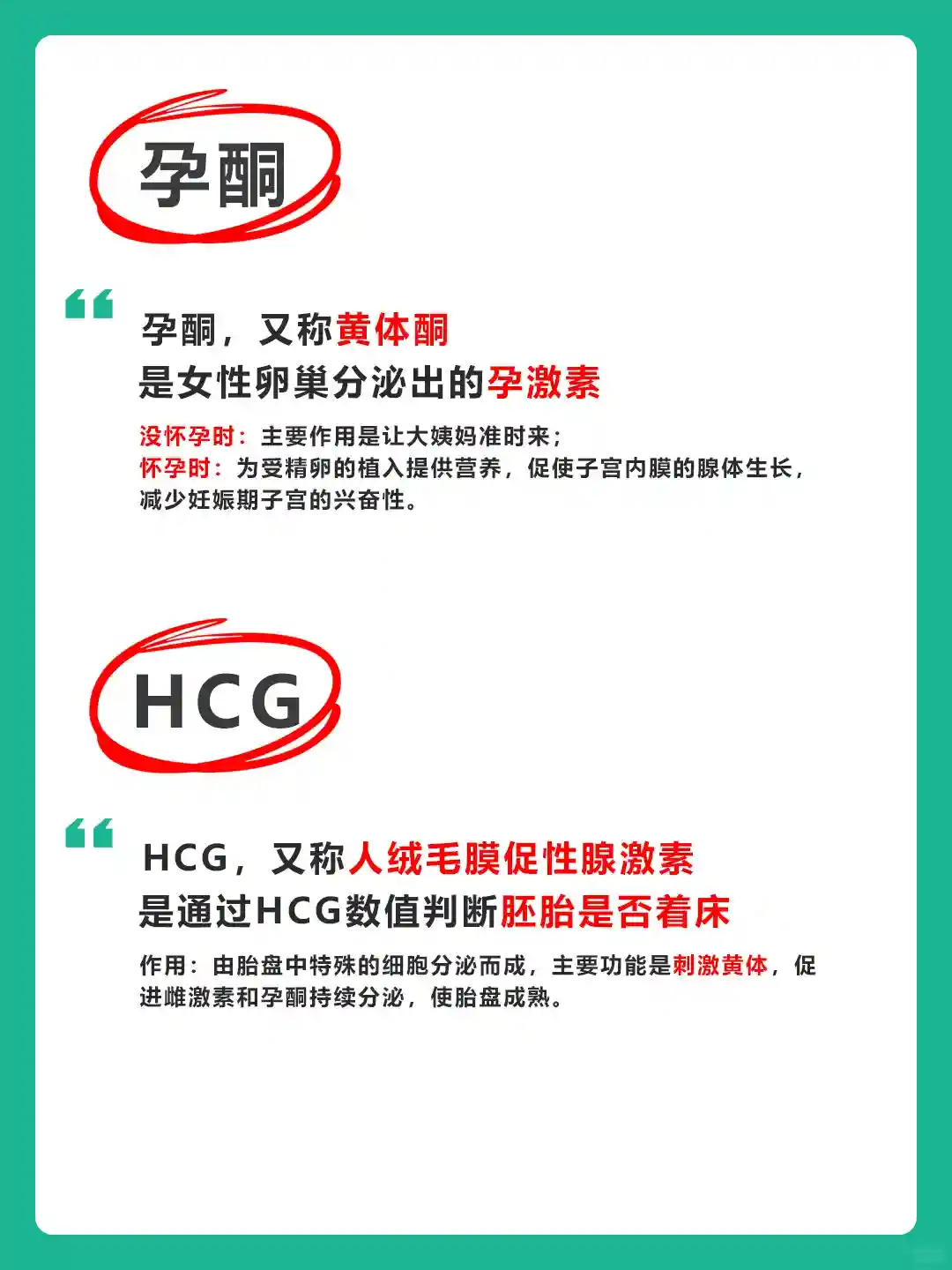 ⭕孕酮: 又称黄体酮,是一种由女性卵巢分泌出的孕激素,为受精卵的植入提供营养,并减少妊娠期子宫的兴奋性,能够满足胚胎生长发育的需要。