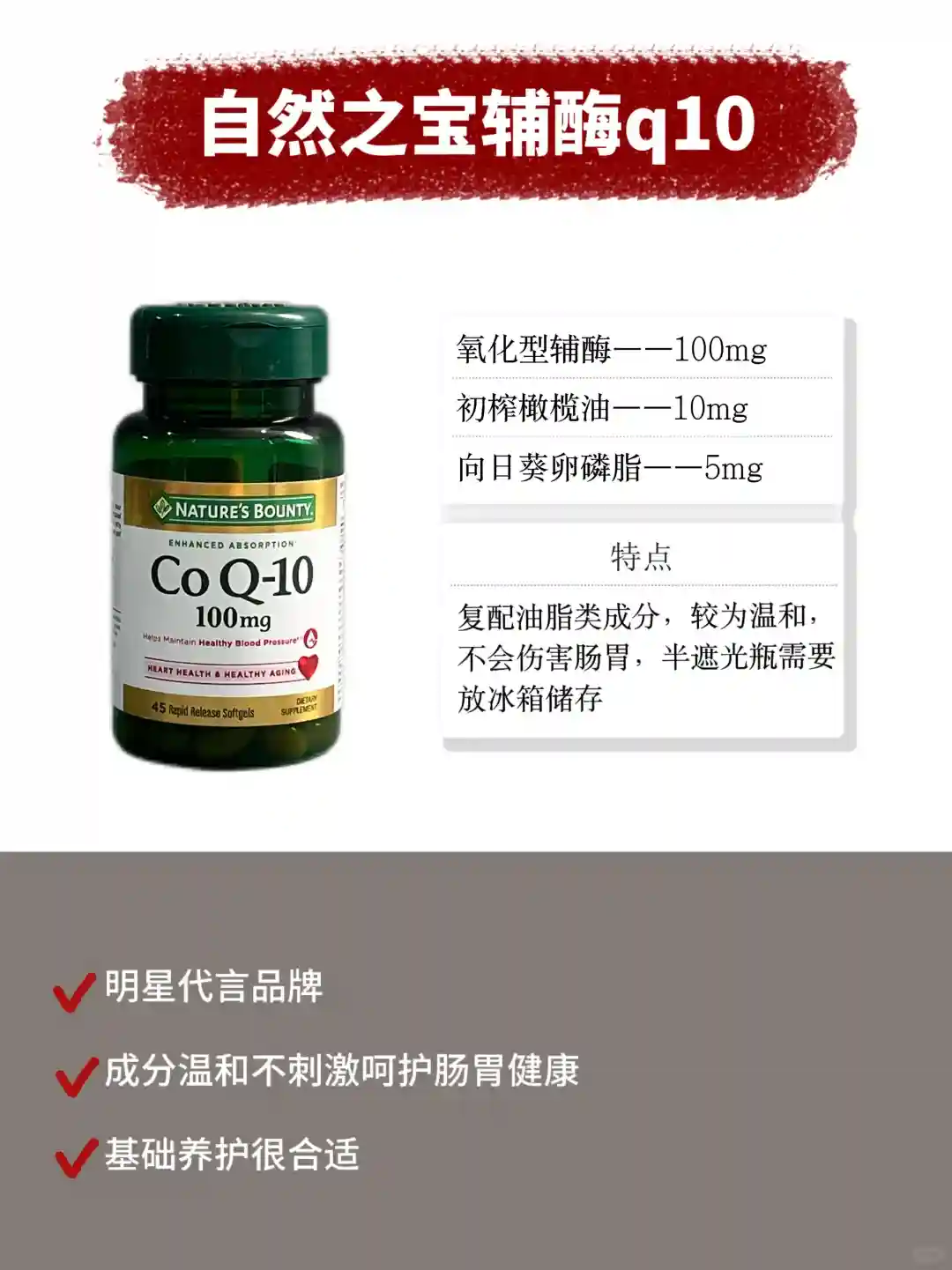 ❌只有单一辅酶q10(要注意额外搭配其他成分)
