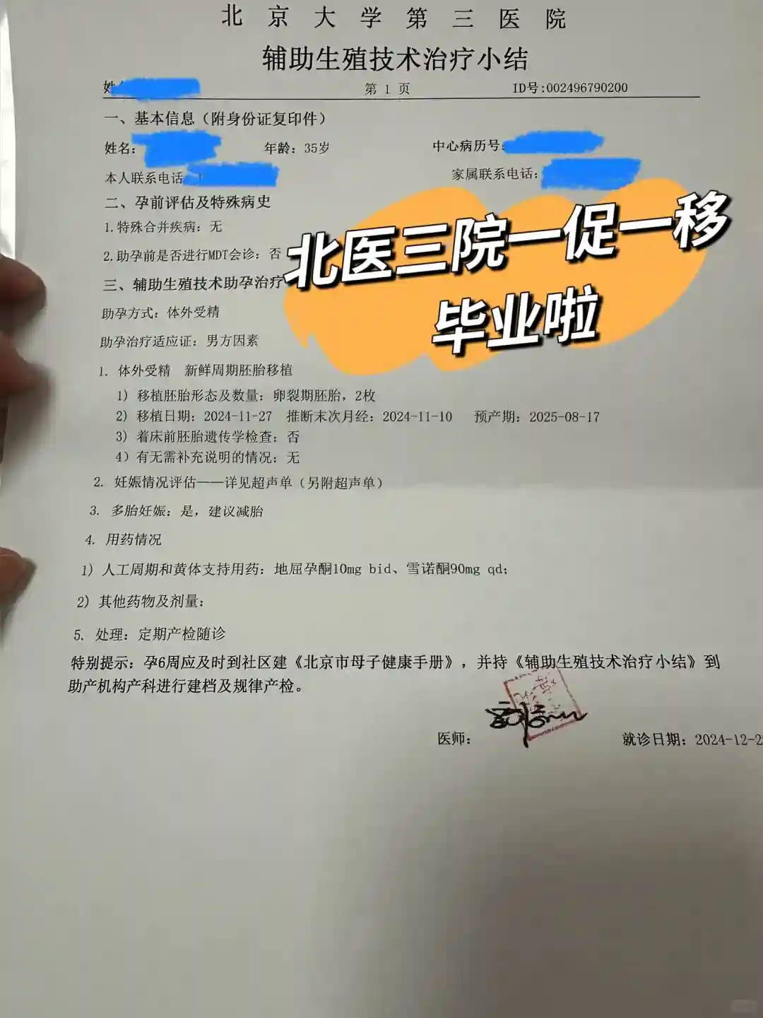 历时2月北医三院一促一移毕业啦 马来西亚供卵