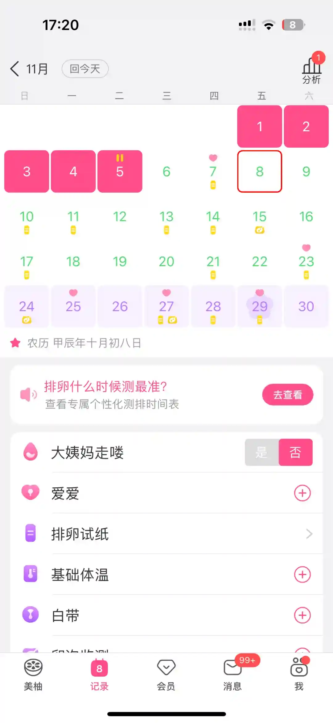 8️⃣🈷️和9️⃣🈷️开始摆烂了,熬夜,烧烤,隔三差五的安排,连同房都没心思,就这样到了10月份,有的坐立不安了。