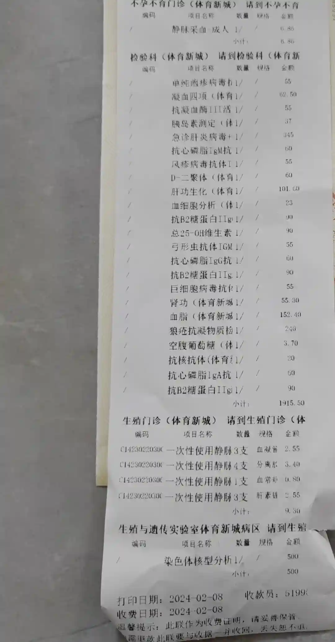 然后抽了九个管血液…等待结果,除了染色体需要一个月,其他结果当天和隔天就全出了。