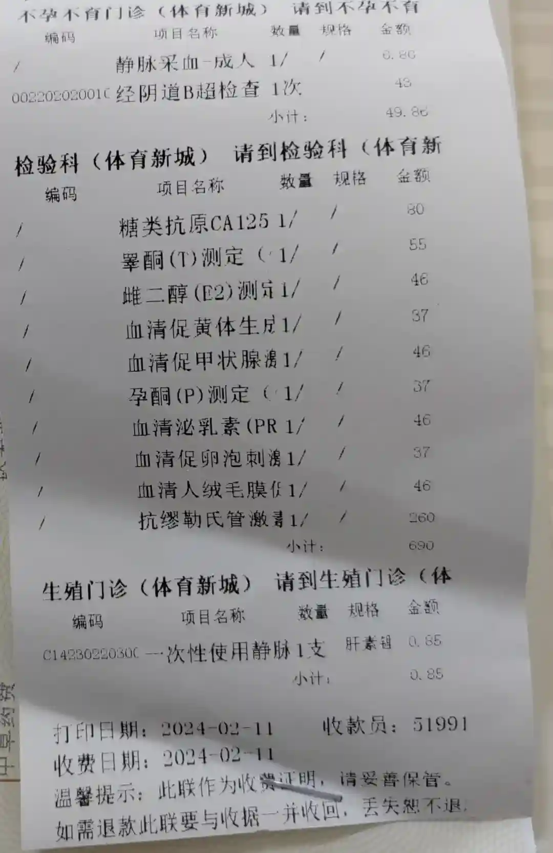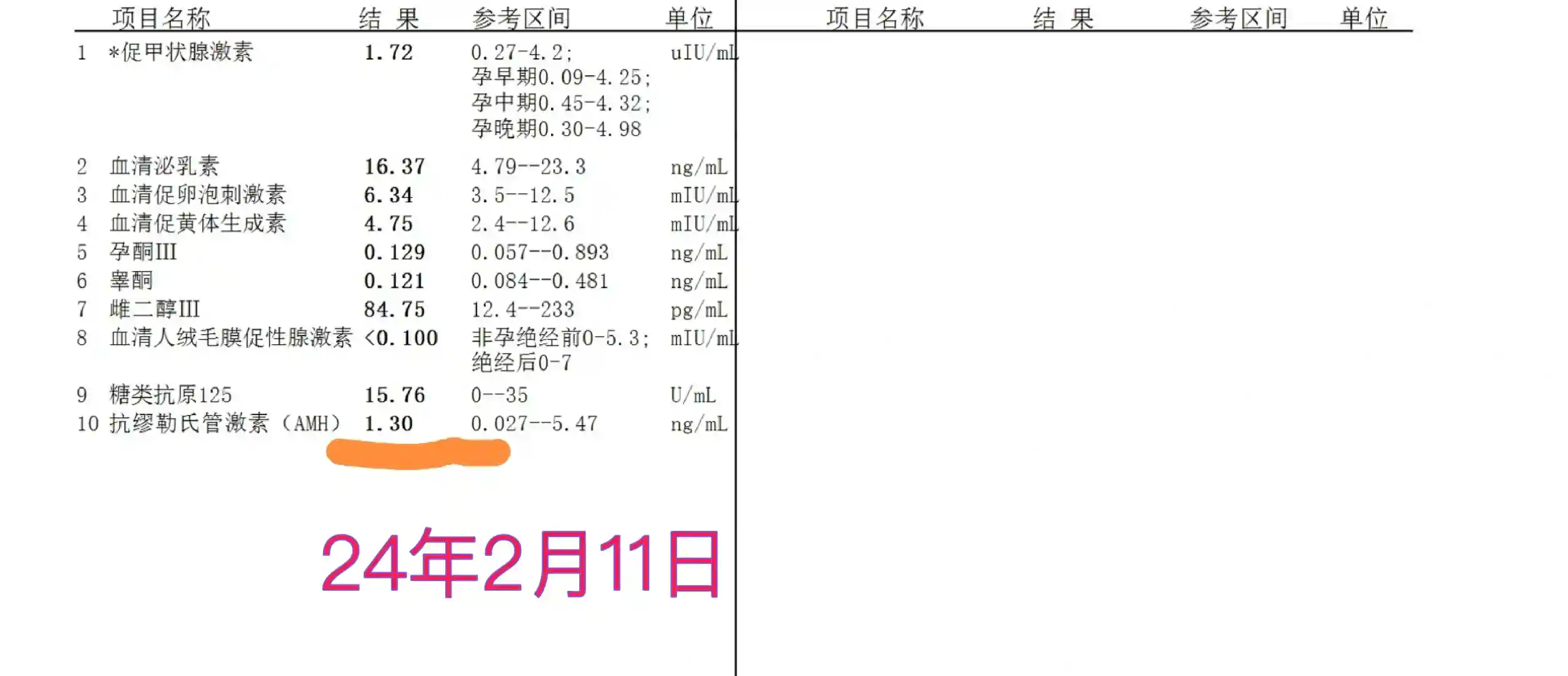 2月11日生理期顺便做了B超,王磊主任说卵泡少,建议尽早要。然后做了十项激素血检,当天结果就出来了。