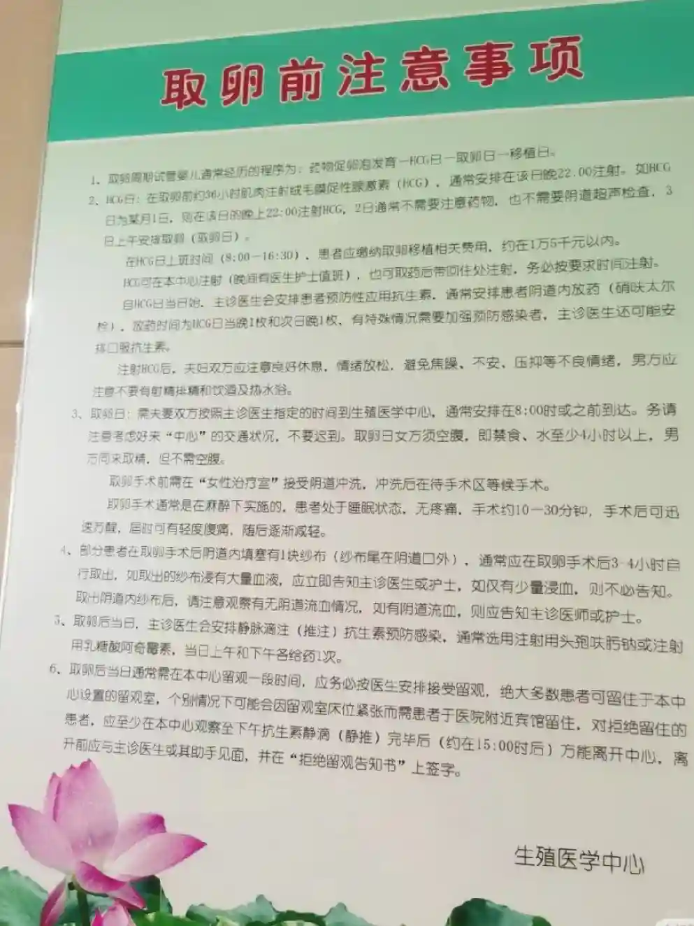 女方需要月经第二天一次,干净后3-5天一次,理论上是这么说。(但我是非经期一次,然后等月经第二天一次,走的人工周期)当天我记得抽了十几管血(这点血不碍事,不用特意补)第一次检查,空腹抽血,一定别忘了。基本上忙完这些,得1天,有些结果要下午3点出。