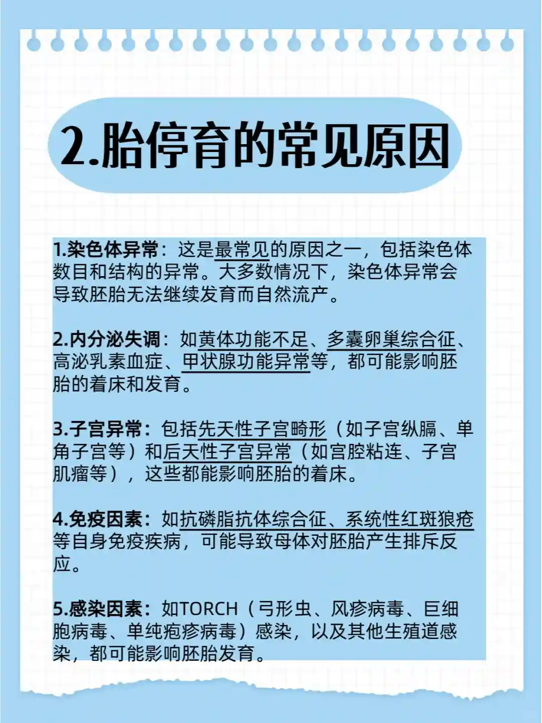 ⑤感染因素:如TORCH(弓形虫、风疹病毒、巨细胞病毒、单纯疱疹病毒)感染,以及其他生殖道感染,都可能影响胚胎发育。