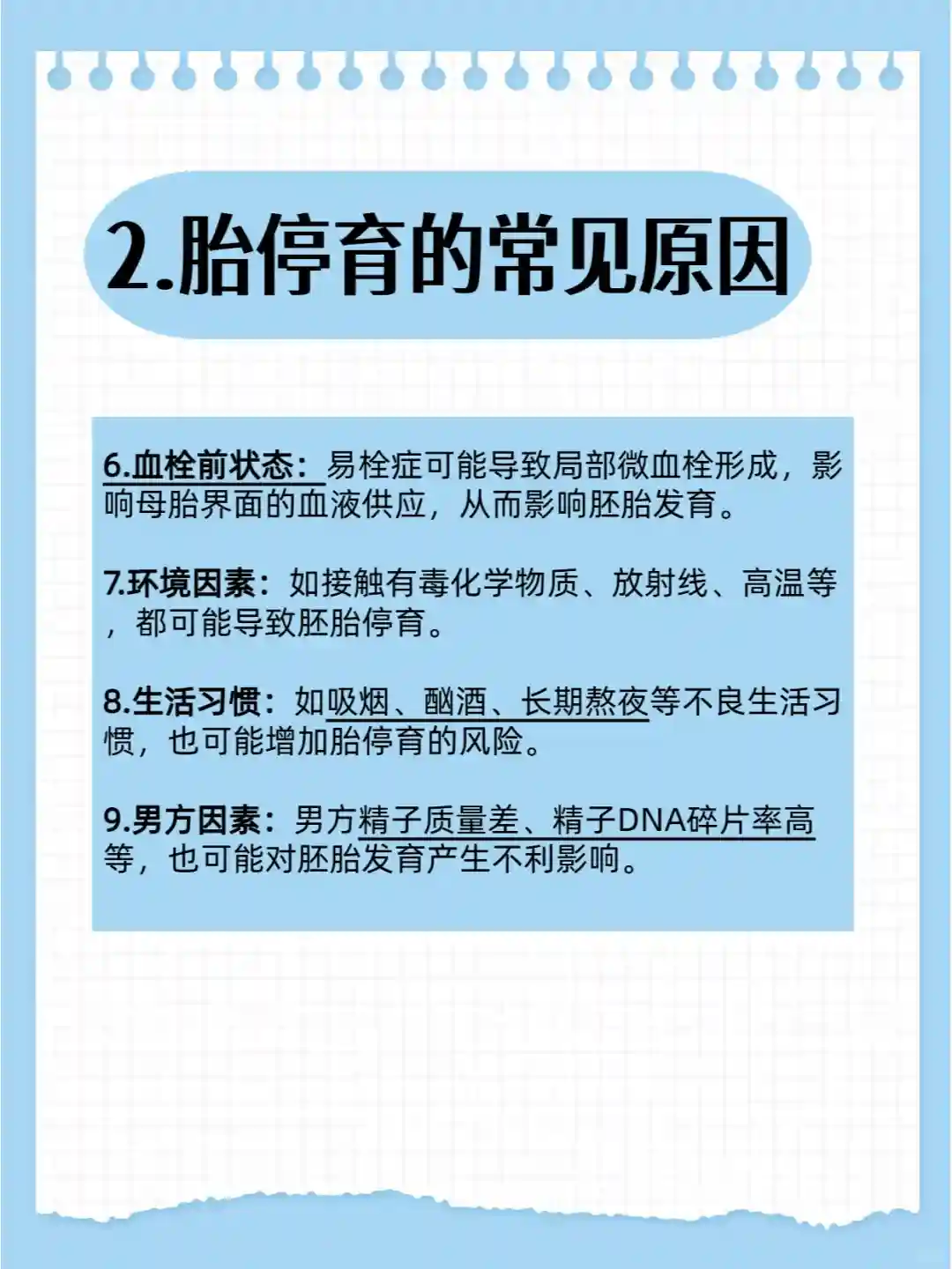 ⑨男方因素:男方精子质量差、精子DNA碎片率高等,也可能对胚胎发育产生不利影响。#胎停育 #胎停育稽留流产 #胎停育是什么原因 #胎停育成因 #胎停育检查 #胎停育后备孕
