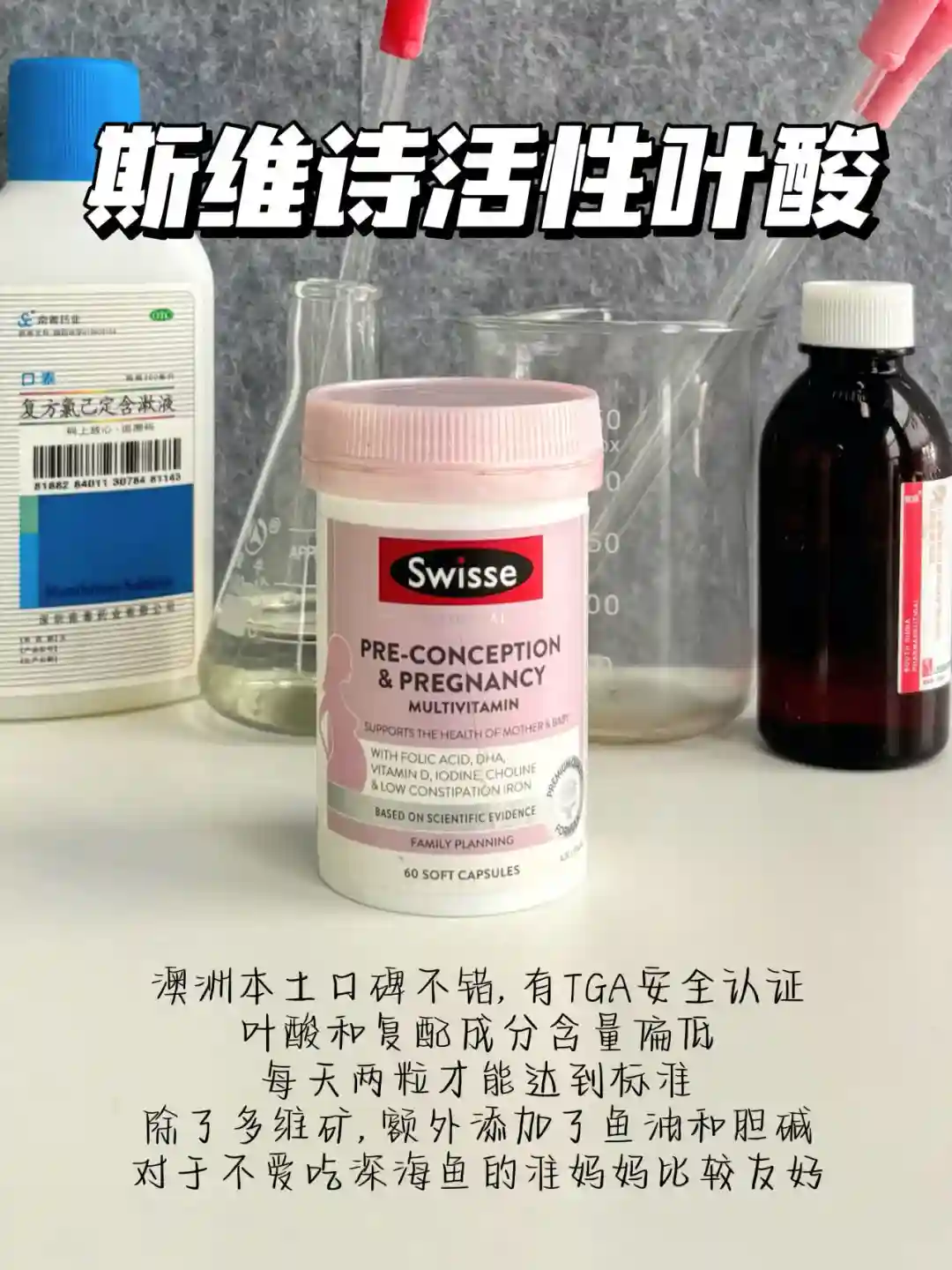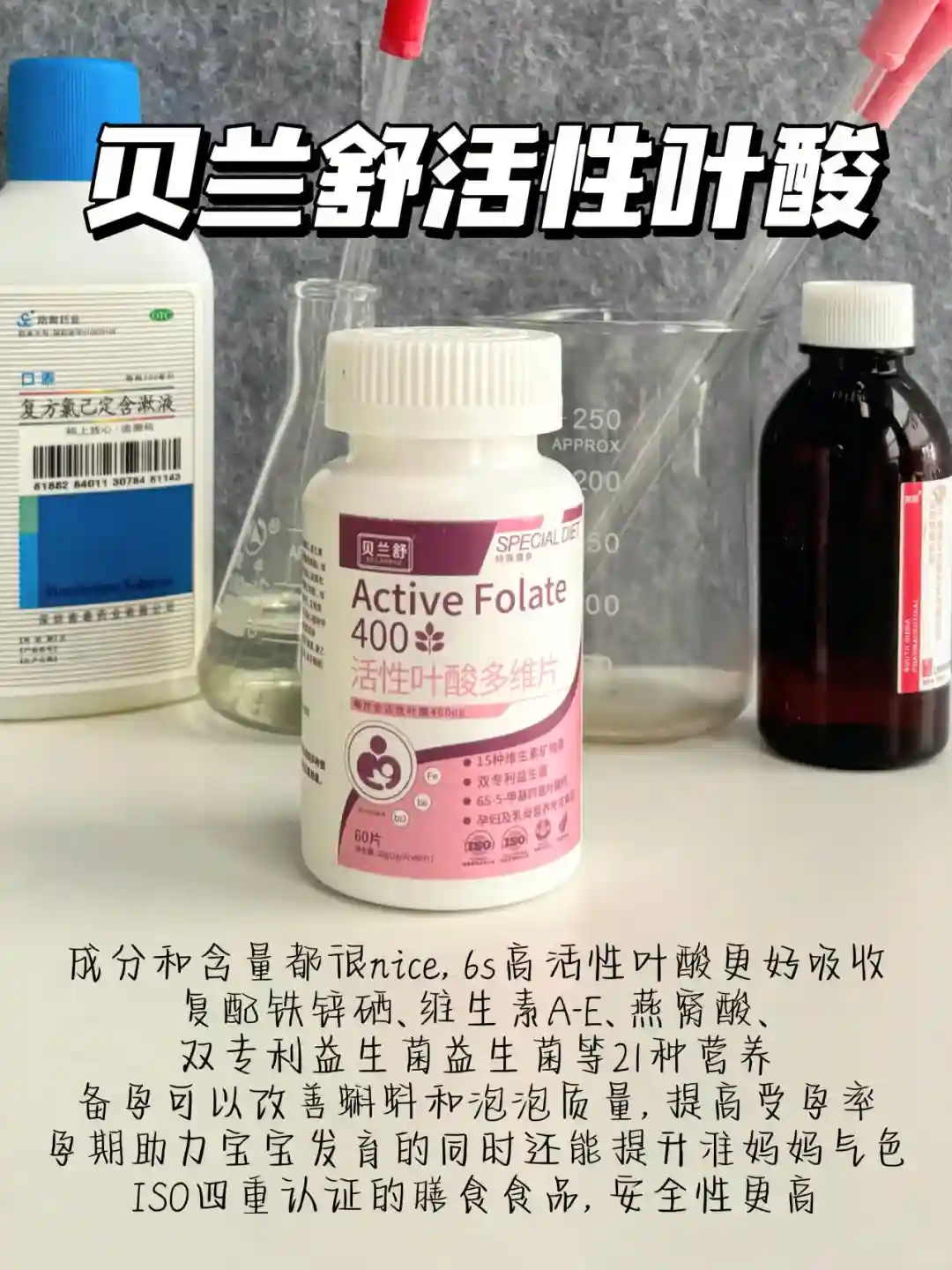 瓶身有“ISO认证”的是国内认可安全有效的活性叶酸,比蓝帽安全性更高