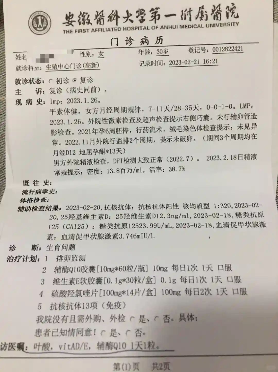 #传好孕 #辅酶Q10 #维生素e #纷乐 #叶酸 #一附院 #安医一附院 #生殖科医生