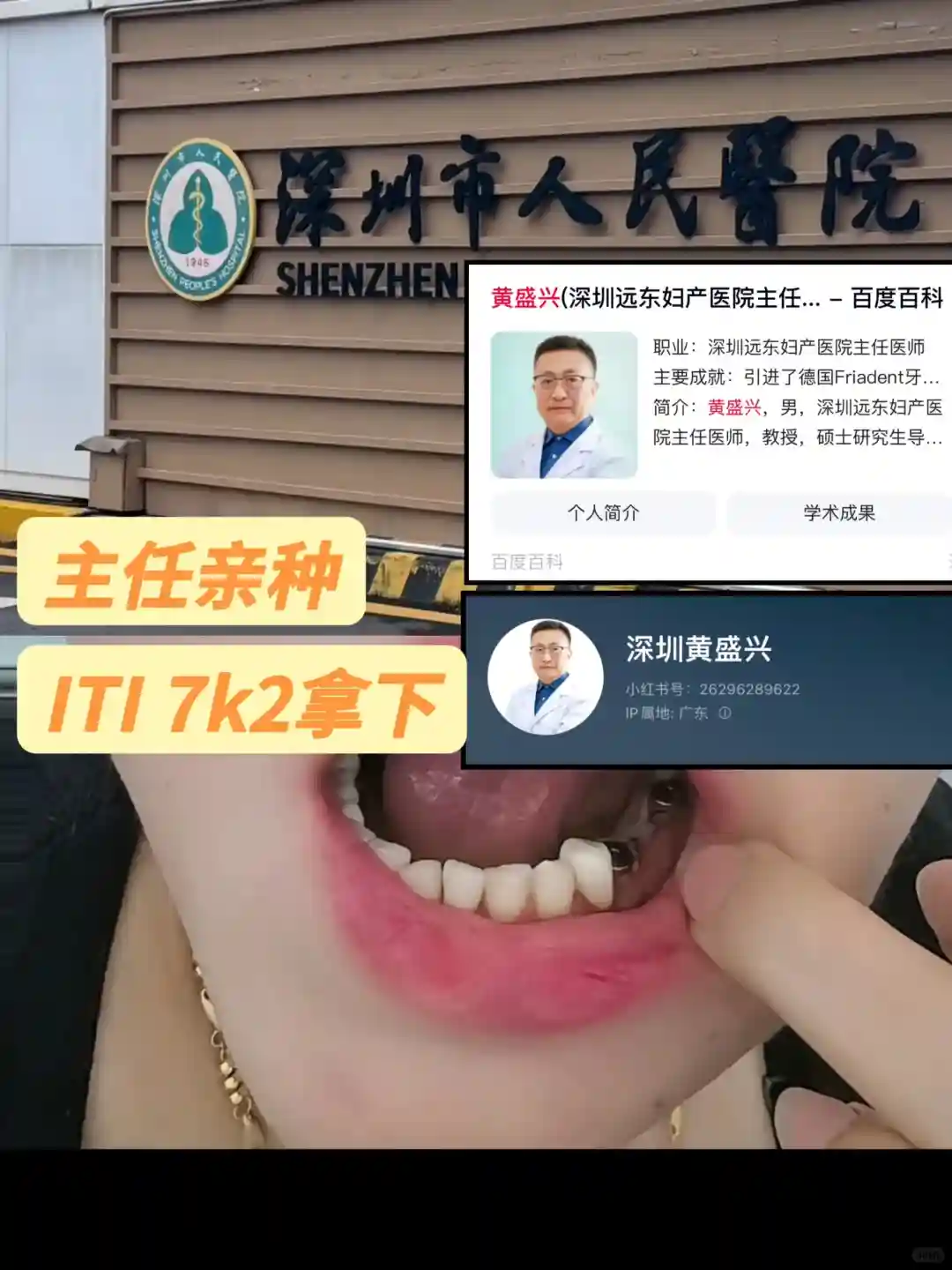 位置在罗湖这边,黄盛兴主任亲自操作执行手术,iti费用7.2k,体验感良好!种牙找对医生是关键~