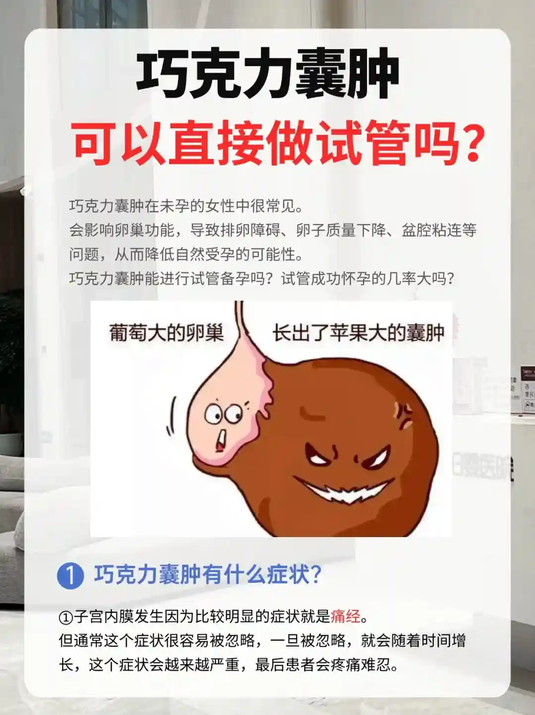 不懂就问💢巧克力囊肿可以直接做试管吗? 广州朵朵供卵