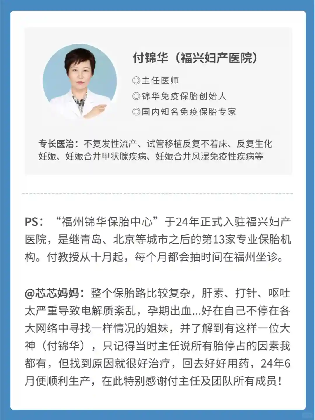 🏥【福州福兴妇产医院 / 锦华保胎中心】付锦华 主任医师(国内知名免疫保胎专家)