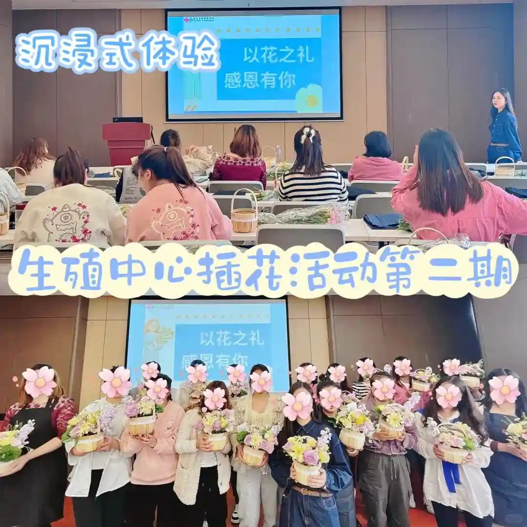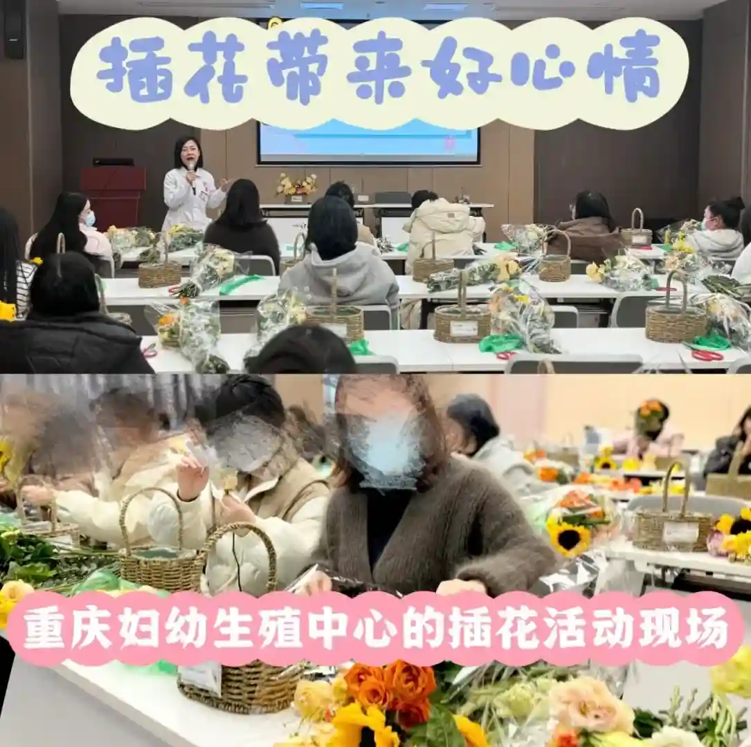 凡是在重庆市妇幼保健院生殖中心做SG的姐妹,均可免费报名参加“艺术插花”活动。图片是第一期和第二期活动现场,现场氛围很温馨,姐妹们把自己对爱人和未来宝宝的祝福全部倾入到插花里,沉浸式地插花体验,让她们忘却一切烦恼,对未来生活充满美好的期许