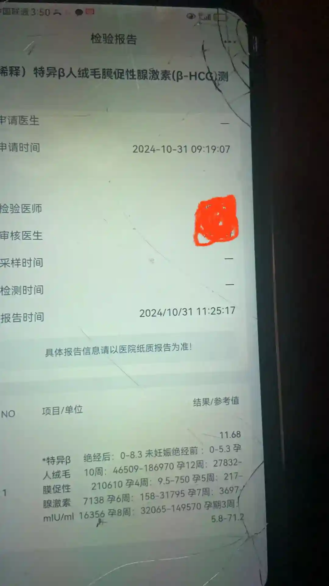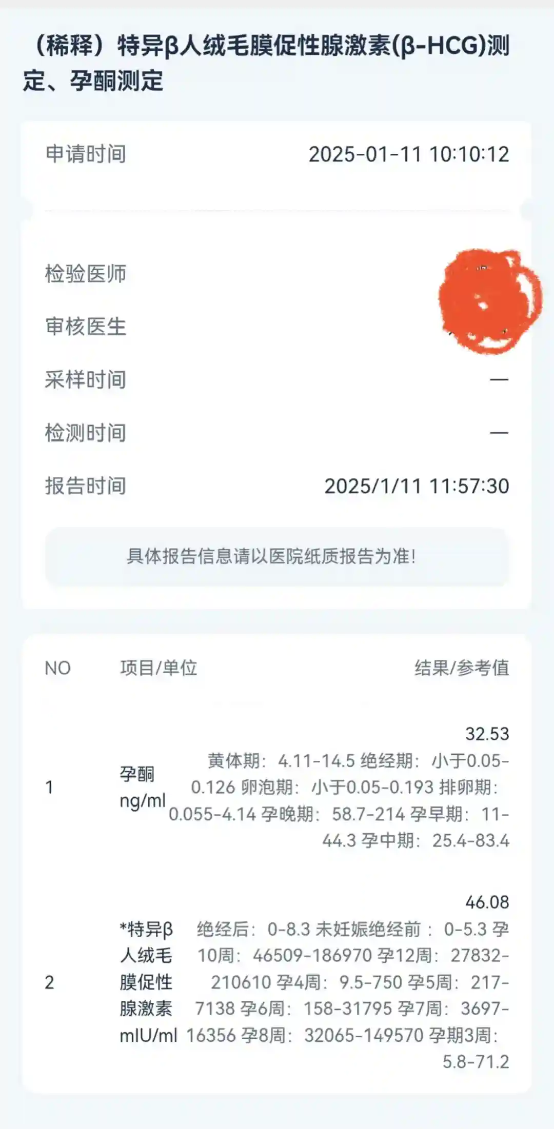 1月份 胚胎移植和验孕,胚胎移后第六天血值