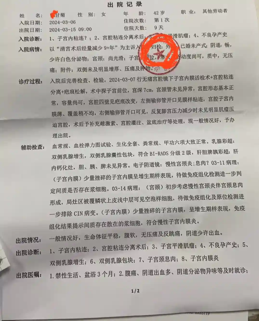 3月份 第一次宫腔镜,行宫腔粘连分离、