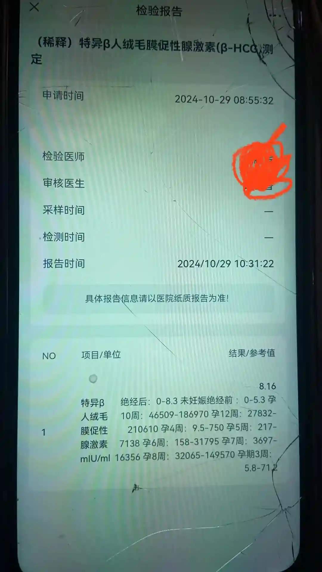 6.2mm,决定尝试移胚胎。10月份 胚胎移植及第七天验孕 HCG :8.16 ,
