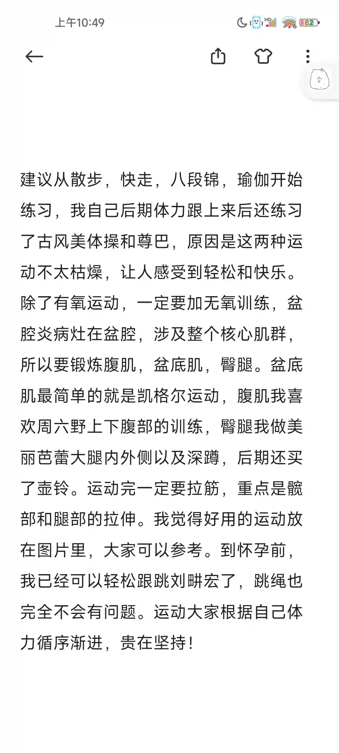✨运动不是乱动,没好之前,不要去做跳绳和跑步这种剧烈运动!有氧加无氧才是关键!具体运动字数限制写不下了我放在后面图片,我常用的跟练视频也放在图片里。
