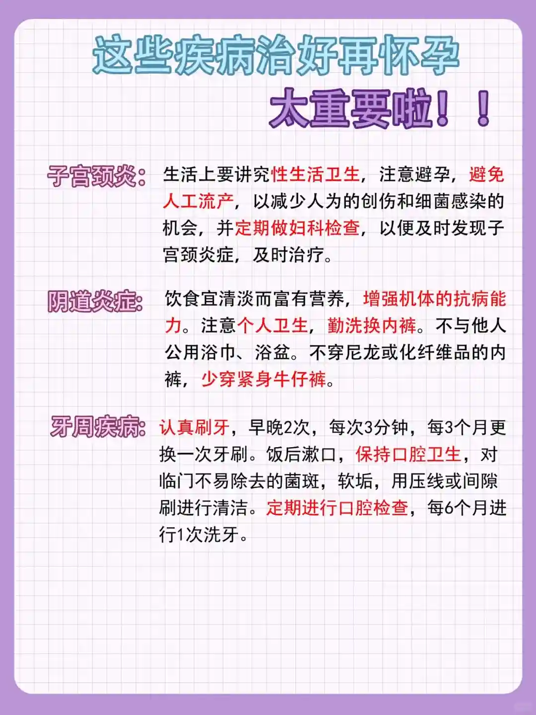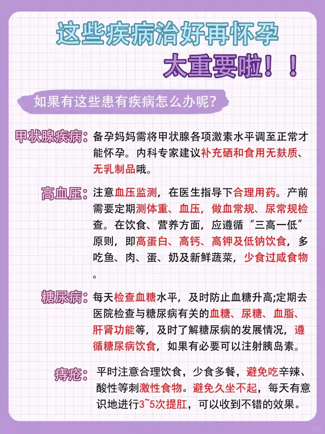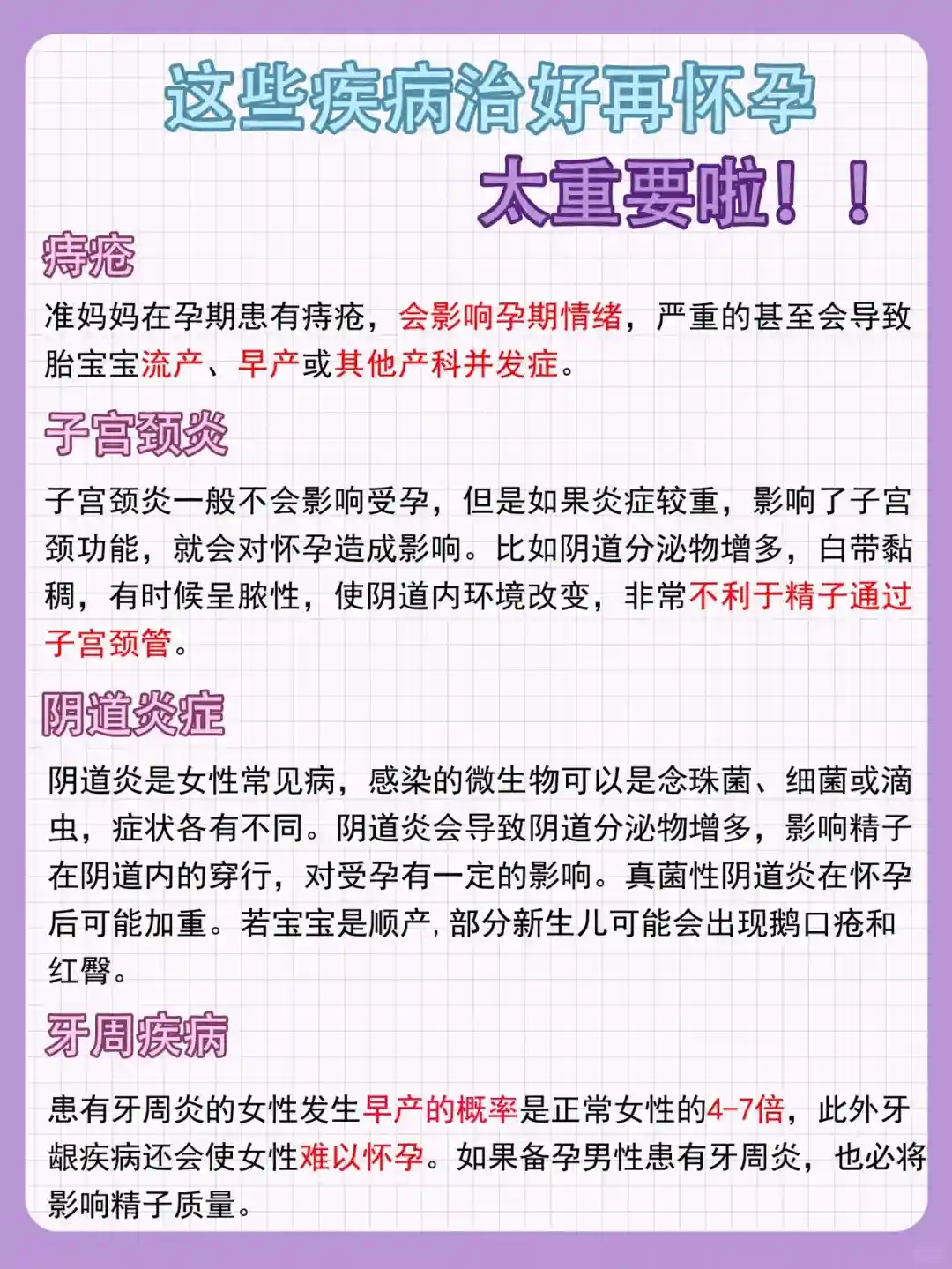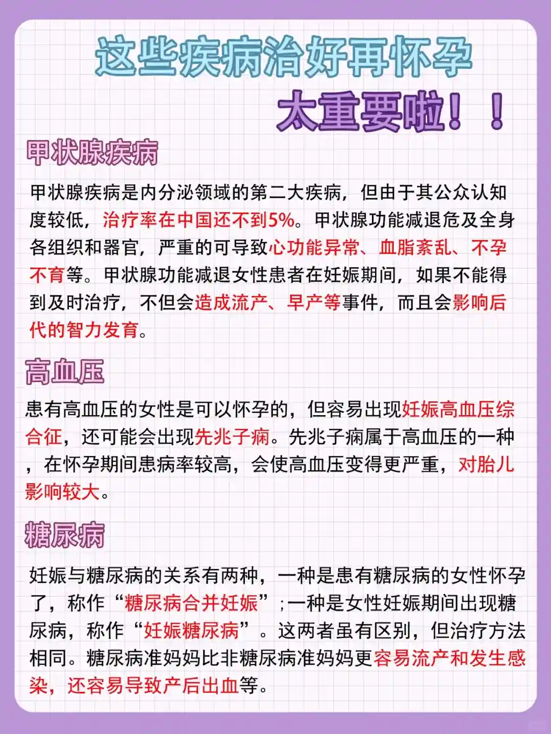 以上这些疾病对宝宝都会有影响哦‼️为了生育一个健康、聪明的宝宝,备孕妈妈一定要先调理好自己的身体如果患有一些不宜怀孕的疾病,为了慎重起见,要及早治疗,等治愈后再受孕‼️#科学备孕 #孕前 #孕期疾病