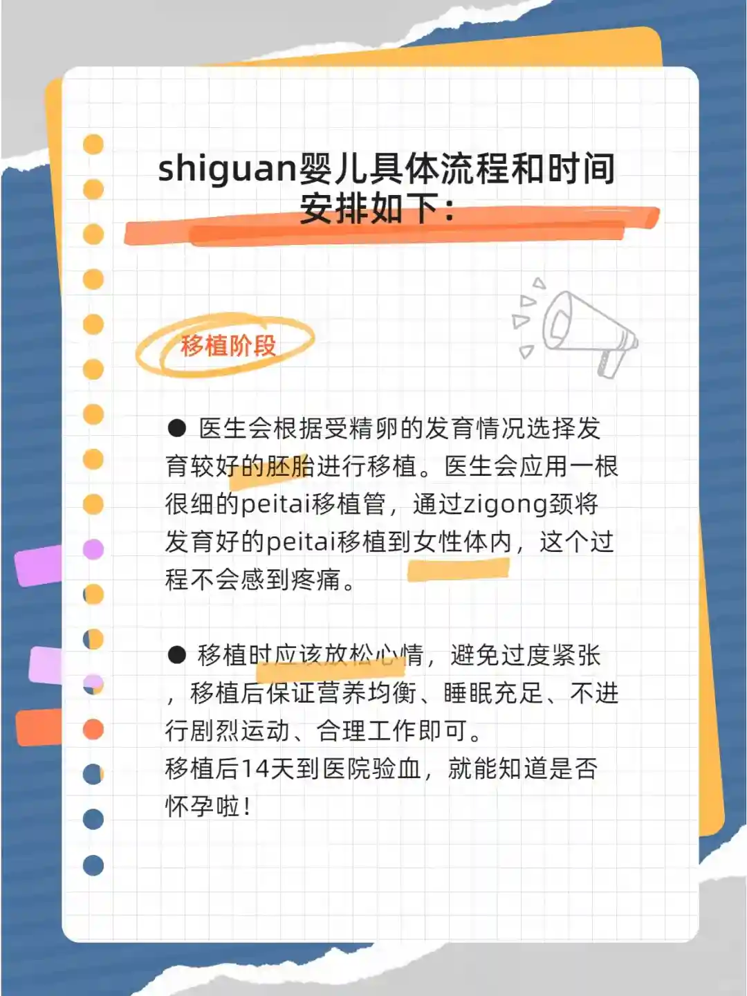 移植后14天到医院验血,就能知道是否怀孕啦,以上就是shiguan婴儿流程。