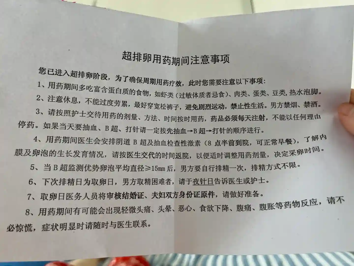 1️⃣促排期间吃鱼、虾、牛肉等高蛋白食物,每天至少两三个鸡蛋(不吃蛋黄),每晚坚持散步、泡脚,每天晚上十点就上床睡觉,保持好心情。我一共打了12天的促排针,从开始打针就一直坚持吃高蛋白食物,每天起码半斤到一斤的鱼、虾、牛肉等。促排期间基本是隔两天测一下卵泡情况,总体下来都很顺利,到第13天就定了夜针。取卵打了麻药,进去之后躺下就睡着了,没什么感觉,醒来之后也没觉得难受,可能是因为我取的卵泡不多的原因,回家之后就是注意多休息,动作轻一些,多喝水,每天喝2000毫升的水,可以多喝椰子水,防止腹水。
