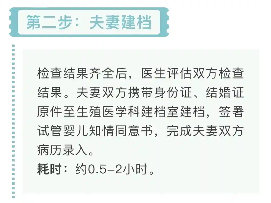 检查结果齐全后,夫妻双方携带身份证、结婚证原件至生殖医学科建档室建档,签署试管婴儿知情同意书,完成夫妻双方病历录入。