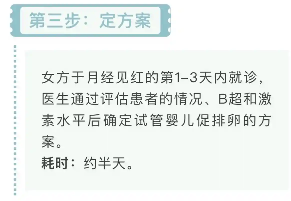 女方于月经见红的1-3天内就诊,医生通过评估患者的情况、B超和激素水平后确定试管婴儿促排卵的方案。