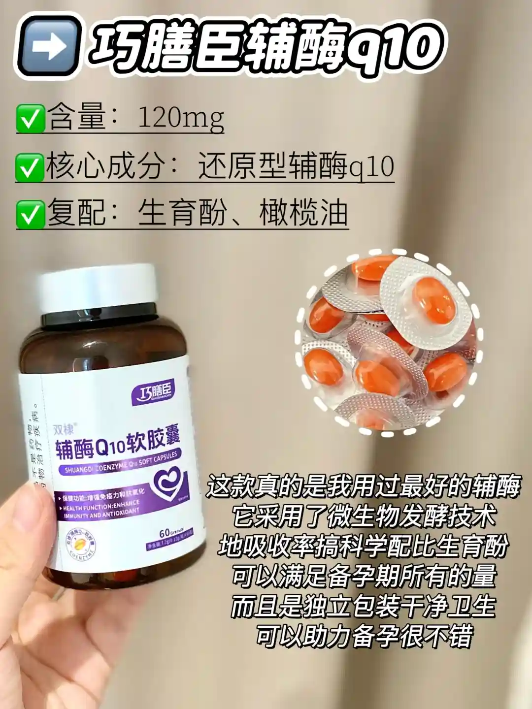 PS:巧膳臣辅酶q10是巧膳臣保健食品品牌旗下产品#辅酶Q10#备孕吃什么保健品#辅酶q10的功效#巧膳臣辅酶q10是巧膳臣保健食品 品牌旗下产品#辅酶q10哪个牌子好排行榜#辅酶q10什么时候吃最好#辅酶q10推荐备孕#辅酶q10每日摄入量#辅酶q10备孕#q10辅酶哪个牌子好#辅酶q10推荐