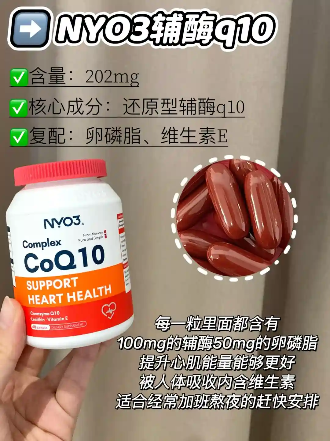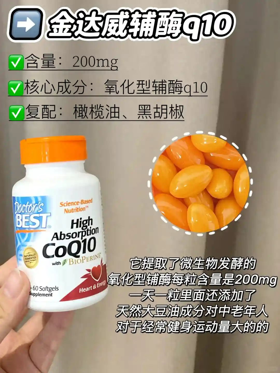 辅酶q10是脂溶性营养,最好随餐或者餐后10分钟内温水服用,不仅可以提高辅酶吸收率加大效果,▶知识点三:辅酶q10贵的好,还是便宜的性价比高?