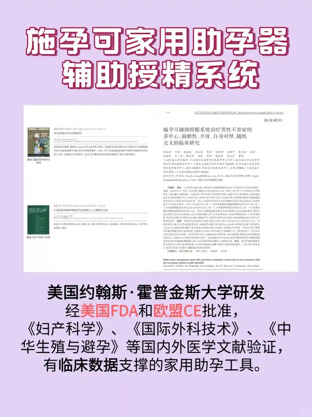 它是由美国约翰斯·霍普金斯大学研发,经美国FDA和欧盟CE批准,《妇产科学》、《国际外科技术》、《中华生殖与避孕》等国内外医学文献验证,有临床数据支撑的家用助孕工具。