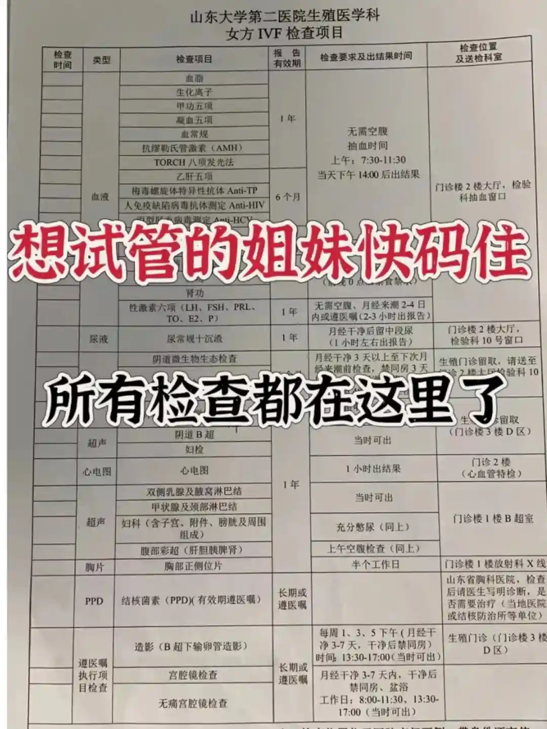 然后就是检查的问题,姐妹们一定要自己也看好大夫给开了哪些检查,自己也做好记录,很多时候开的会有漏开的,省的要折腾好几次,尤其是像我一样从外地来的,可能一天要折腾好多回,然后要问好护士都在哪做,有的B超和白带等一些是在生殖科直接做的,就不用跑了,有尿检的先不要着急,有个B超是要憋尿的,我就是以为是不需要的,又重新憋了好久
