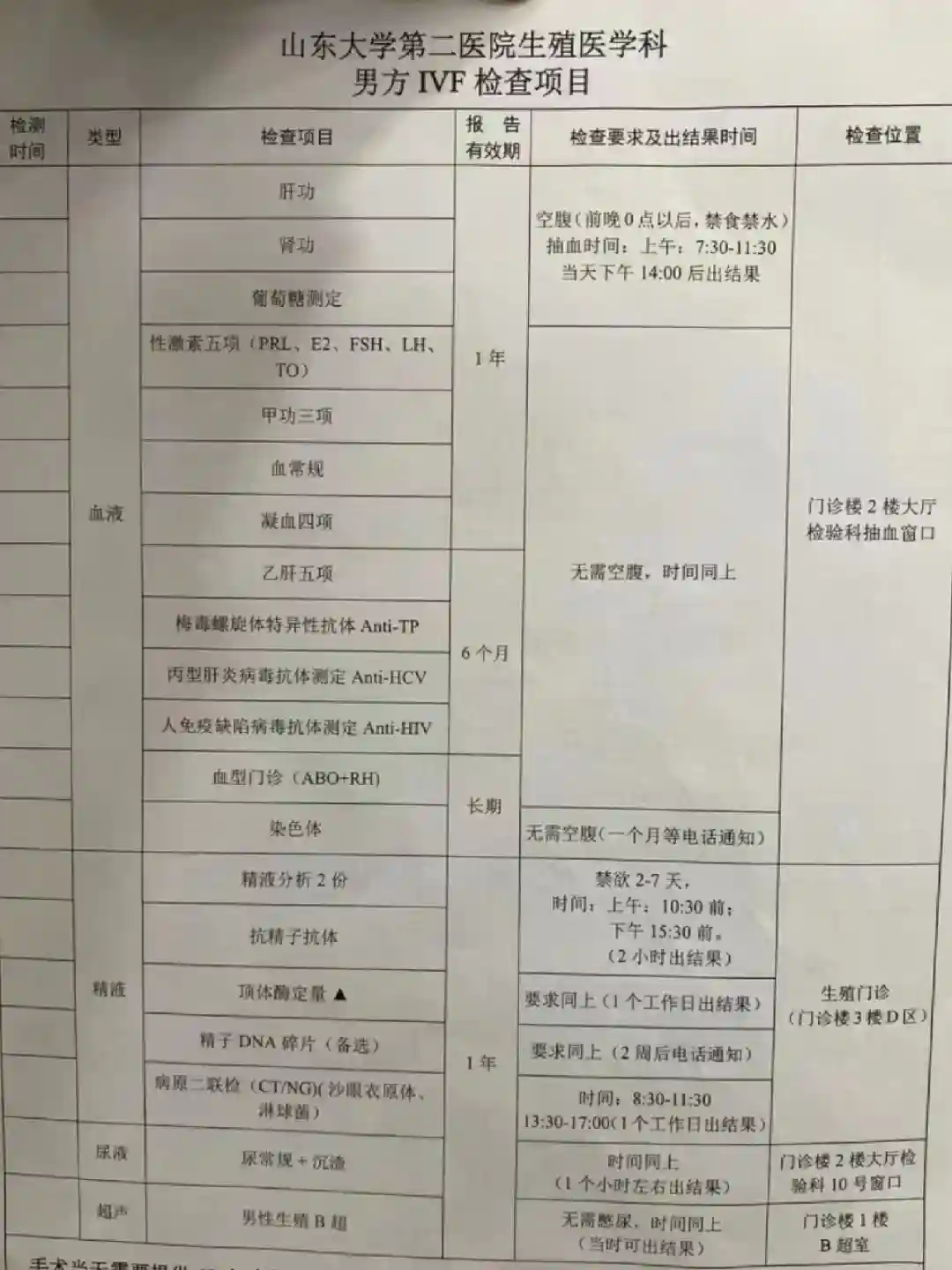 ,男生的精液报告是需要两次的,所以你可以在你们本地做一次,女生的一年以内的报告通通都带着,也有的可以直接用不用重新做的这边医院还有一个是跟我们这不一样的,是先往你的身份证充钱,然后每次去做检查直接排队做,做了才扣钱,我们这是大夫先开,然后交钱然后做检查的,我是为了方便直接山大二院微信公众号绑定身份证直接手机充钱的,省的来回跑