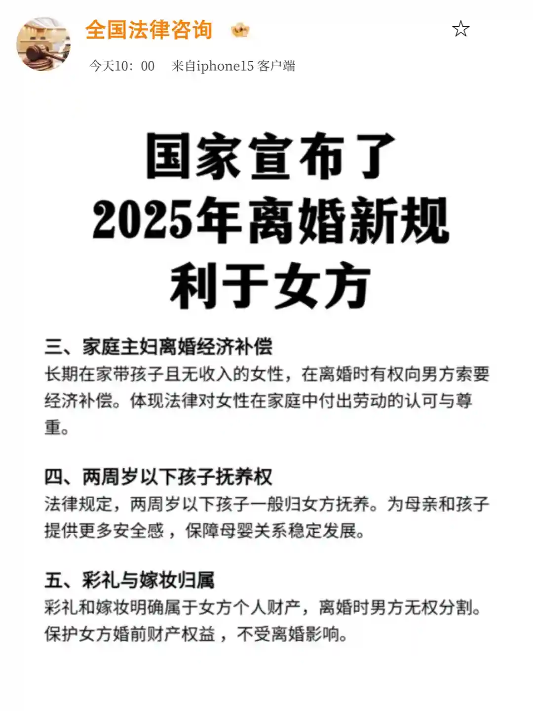 彩礼和嫁妆明确属于女方个人财产,离婚时男方无权分割。保护女方婚前财产权益 💎,不受离婚影响。