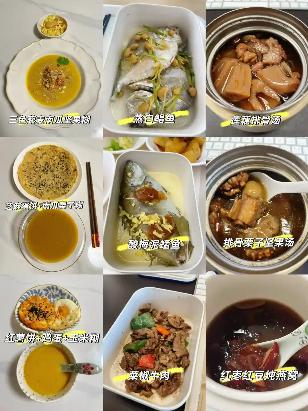 1⃣️ 三色藜麦南瓜坚果糊糊、蒸白鲳鱼、莲藕排骨汤