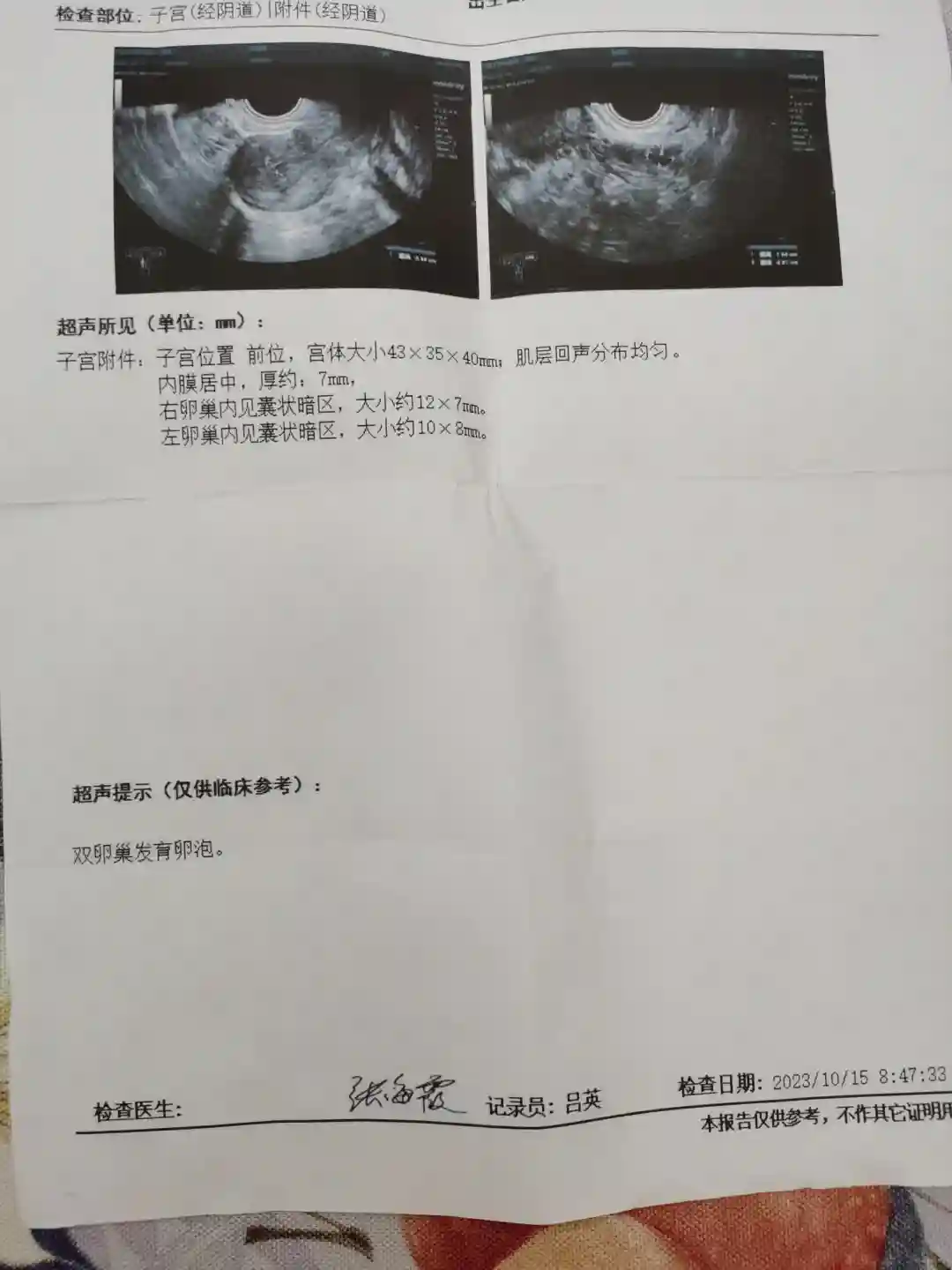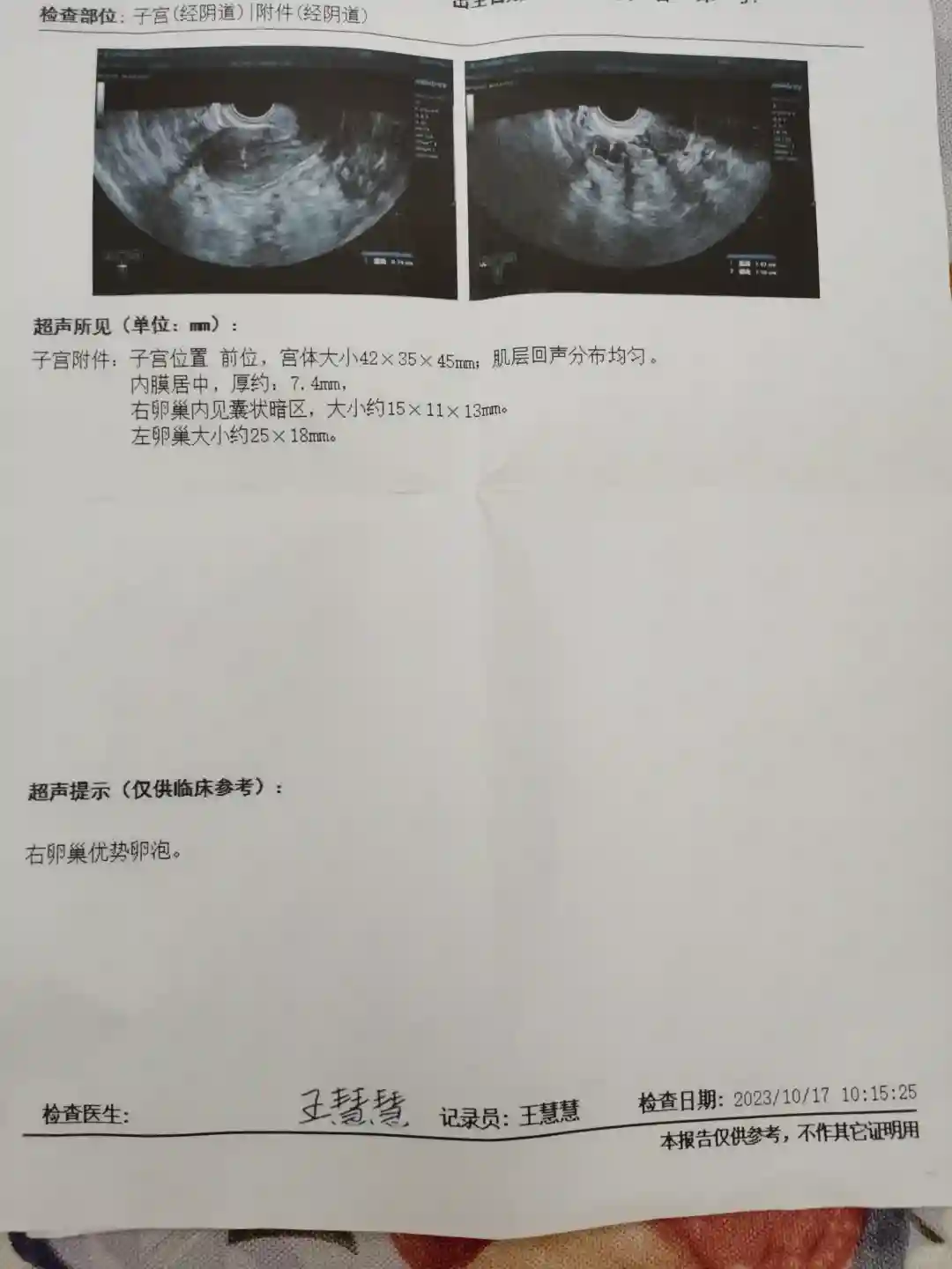 10.23日B超(挂号费25,B超花费75)卵泡已排